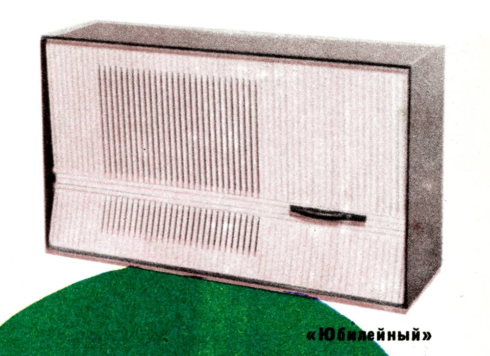 Абонентский громкоговоритель "Юбилейный" с начала 1967 года выпускал Красносельский завод пластмасс в Ленинградской области. Выпуск модели приурочен к 50-тилетию октябрьской революции. Абонентский громкоговоритель "Юбилейный" предназначен для озвучивания передач, ведущихся по местной трансляционной радиосети. Подводимое к абон. громкоговорителю напряжение 30 вольт. Номинальная подводимая мощность 150 мВт. Диапазон воспроизводимых звуковых частот 160...5000 Гц. Громкоговоритель типа 1ГД-30. Габариты громкоговорителя 242х150х70 мм. Вес 950 гр.
