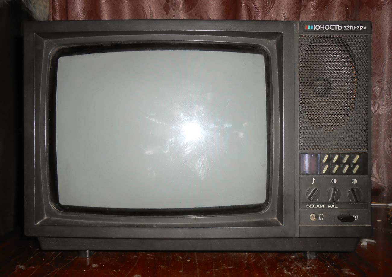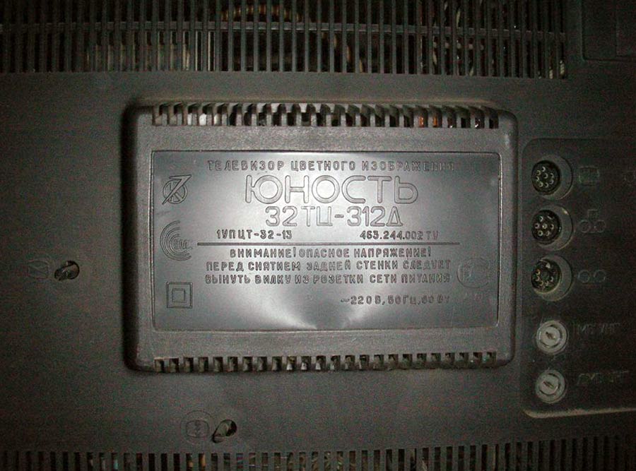 Цветной телевизор *Юность 32ТЦ-312Д* с 1992 года выпускал Московский радиотехнический завод. **Юность 32ТЦ-312Д** - унифицированный телевизор для приёма программ цветного изображения и звукового сопровождения в диапазонах МВ и ДМВ в системах ПАЛ и СЕКАМ. Селектор каналов 8-программный, сенсорный с заранее настроенными программами. Конструкция модели кассетно-модульная. В телевизоре применен кинескоп 32ЛК2Ц с размером экрана по диагонали 32 см и углом отклонения лучей 90°. Чувствительность в MB/ДМВ диапазонах 40/70 мкВ. Разрешающая способность 350 линий. Номинальная выходная мощность 0,5 Вт. Питание от сети 220 В. Потребляемая от сети мощность 60 Вт. Габариты телевизора 300х450х350 мм. Его масса 13 кг. ТВ имеет вход для воспроизведения видеопрограмм с видеомагнитофона и записи или воспроизведения звуковых фонограмм обычным магнитофоном. Телевизор имеет вход RGB для подключения бытового компьютера (например Синклер) выполненный на разъёме СГ-8. Распайка позволяла использовать штекер СШ-7 (центральный контакт не задействован).