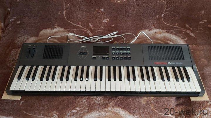 Клавишный электромузыкальный инструмент *Юность-33-PS MIDI* выпускали с 1994 года. Он изготовлен на базе MIDI-клавиатуры *Юность-32 MIDI*, но имеет встроенный тон-генератор. Инструмент может быть использован как профессиональными музыкантами, так и любителями для исполнения музыкальных произведений различных жанров. Имеет MIDI-выход для подключения к другому тон - генератору, электромузыкальному синтезатору с MIDI - входом или к персональному компьютеру. Инструмент имеет встроенное усилительно-акустическое устройство. Техническая характеристика: Динамическая клавиатура типа *VELOCITY* 64 клавиши. 128 пресетных звуков + набор ударных. Полная полифония. 4-х разрядный цифровой светодиодный индикатор для отображения текущих параметров и номеров программ. Регуляторы изменения высоты тона, модуляции и громкости. Транспонирование звука. Режим сдвоенного голоса. Расщепление клавиатуры на 2 части с произвольной точкой расщепления. Программирование набора тембров. Коммутация: гнездо для переключения программ с помощью педали, гнездо СУСТЕЙН, MIDI - вход, MIDI - выход, линейный выход. Адаптер для подключения к IBM PC совместимому компьютеру. Встроенная акустическая стереосистема 2x2 Вт. Габариты 935x292x95 мм. Вес 12 кг.