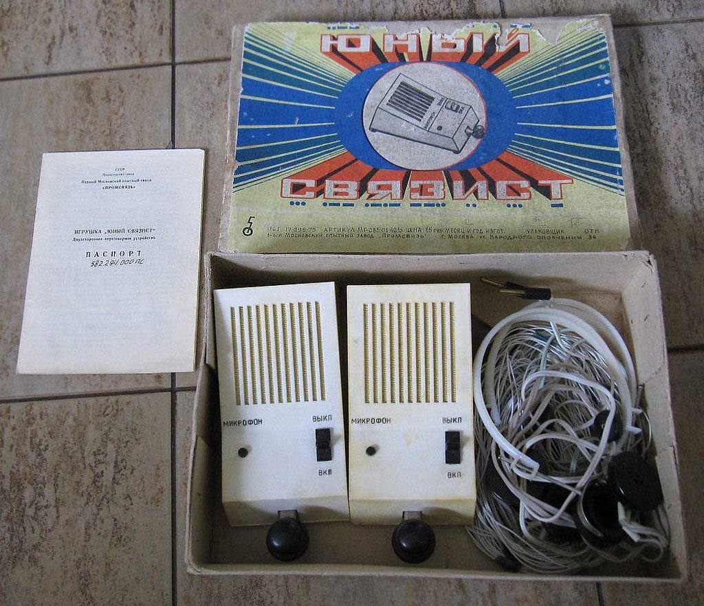 Двухстороннее переговорное устройство *Юный связист* выпускалось предположительно с 1976 года Первым Московским опытным заводом *Промсвязь*.