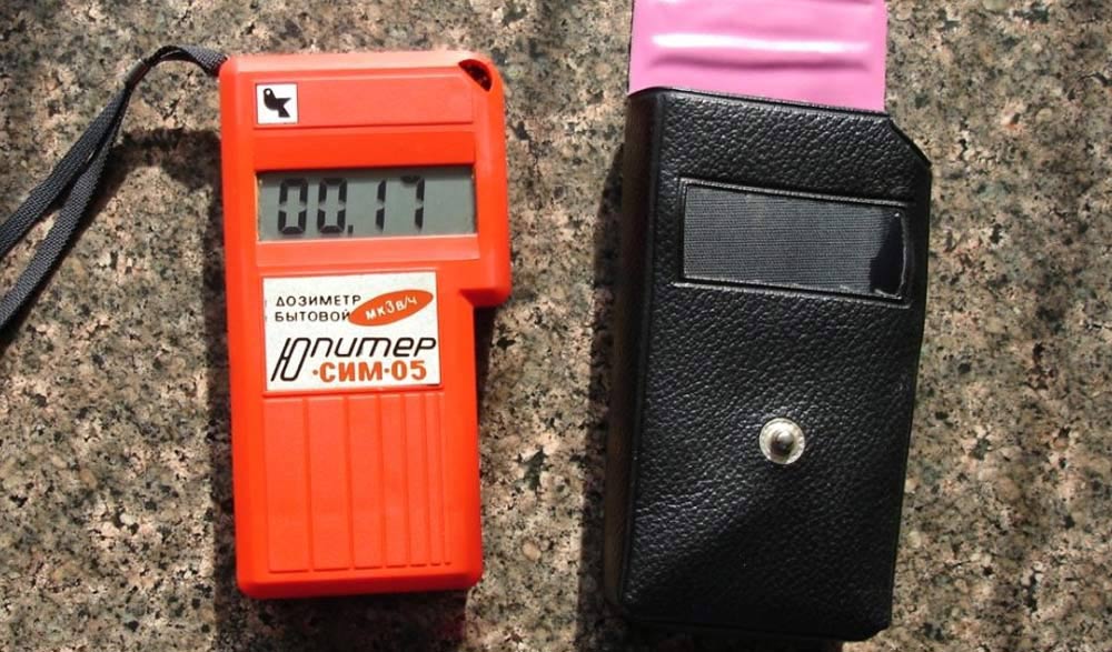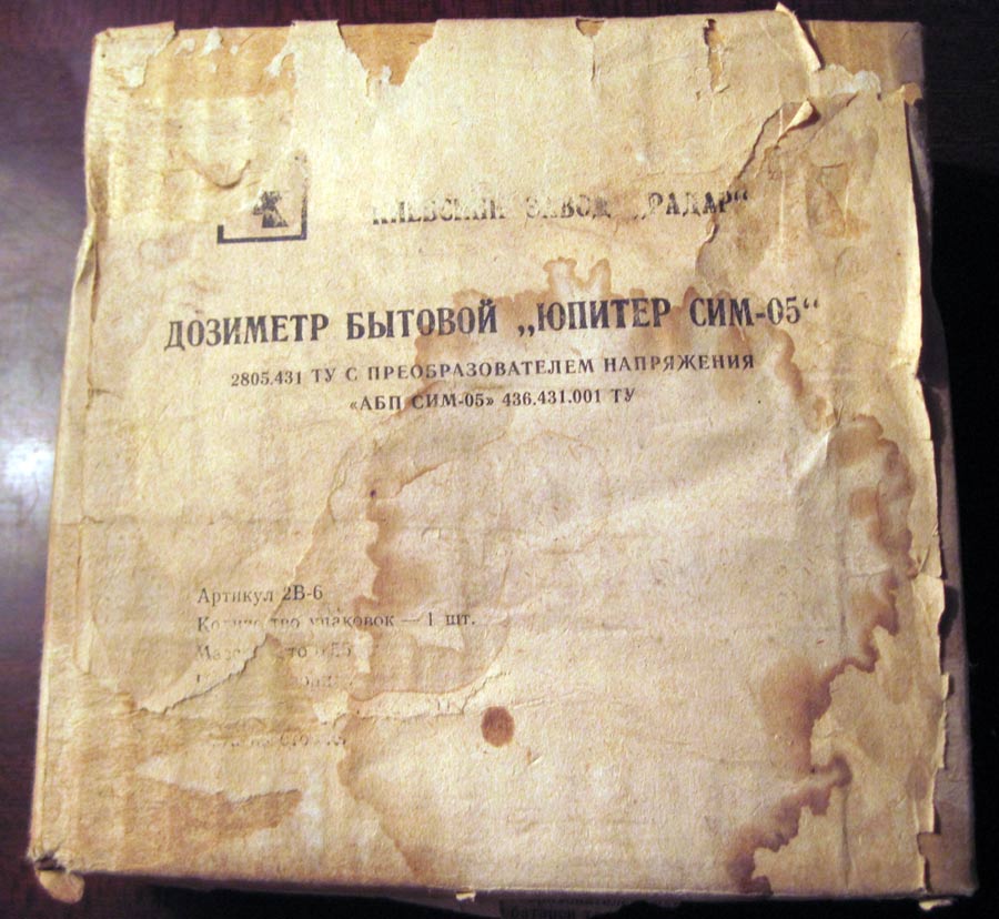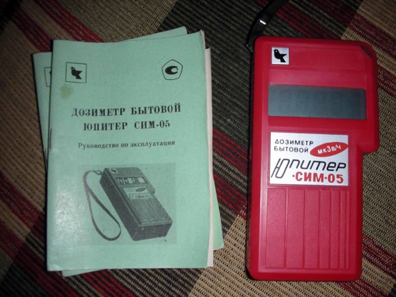 Дозиметр бытовой *Юпитер* (Сим-05) выпускался с 1990 года Киевским заводом *Радар*. Предназначен для оценки уровня мощности эквивалентной дозы гамма-излучения с помощью звуковой сигнализации, показаний на цифровом табло и извещении продолжительным звуковым сигналом о превышении порога по МЭД. Диапазон энергий 0,06...1,25 МэВ. Предельно допустимое облучение 10 (1000) мЗвч (мРч). Диапазон оценки МЭД в режиме ИЗМ - 0,05...99,99 мкЗвч (мкРч), в режиме ПОИСК - 0,1...999,9 мкЗвч (мкРч). Масса дозиметра - 0,25 кг.