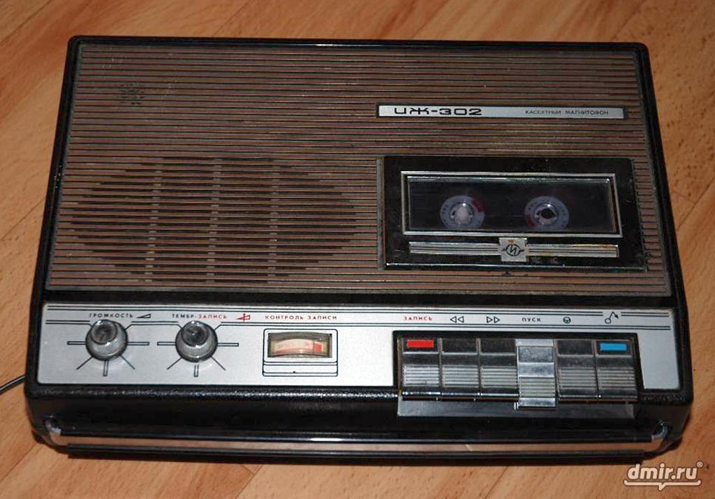 Кассетный магнитофон *ИЖ-302* с I-кв 1982 года выпускал Ижевский мотозавод. Магнитофон создан на базе магнитофона **Электроника-302**, учитывая модернизации. Он предназначен для записи или воспроизведения звука с применением кассет МК-60. Магнитофон **ИЖ-302** состоит из трёх основных узлов, размещенных в пластмассовом корпусе: ЛПМ, усилителя ЗЧ и вкладываемого БП. Магнитофон позволяет производить запись с микрофона МД-64М, радио или телевизора, усилителя ЗЧ, радиолинии, электрофона и другого магнитофона; воспроизведение через встроенный громкоговоритель, усилитель ЗЧ, внешнюю АС, головные телефоны. Контроль уровня записи производится с помощью стрелочного индикатора. При воспроизведении и перемотках индикатор показывает напряжение питания. Магнитофон обеспечивает временную остановку носителя. Кнопка, расположенная на микрофоне дистанционно управляет включением магнитофона, что дает возможность использовать его в репортёрских целях. Время работы от комплекта свежих элементов А-343 ~ 10 часов. Напряжение питания: постоянного тока 9 В, переменного 220 В. Число дорожек записи 2. Скорость движения ленты 4,76 см/сек. Рабочий диапазон частот 63 ...10000 Гц. Время записи и воспроизведения на кассете МК-60 - 2х30 мин. Коэффициент детонации 0,35%. Относительный уровень шумов и помех в канале ЗВ -46 дБ. Диапазон регулировки тембра по ВЧ -10 дБ. Номинальная выходная мощность от батарей 0,7 Вт. Габариты модели 90x318x225 мм. Вес с кассетой и элементами 3,2 кг.