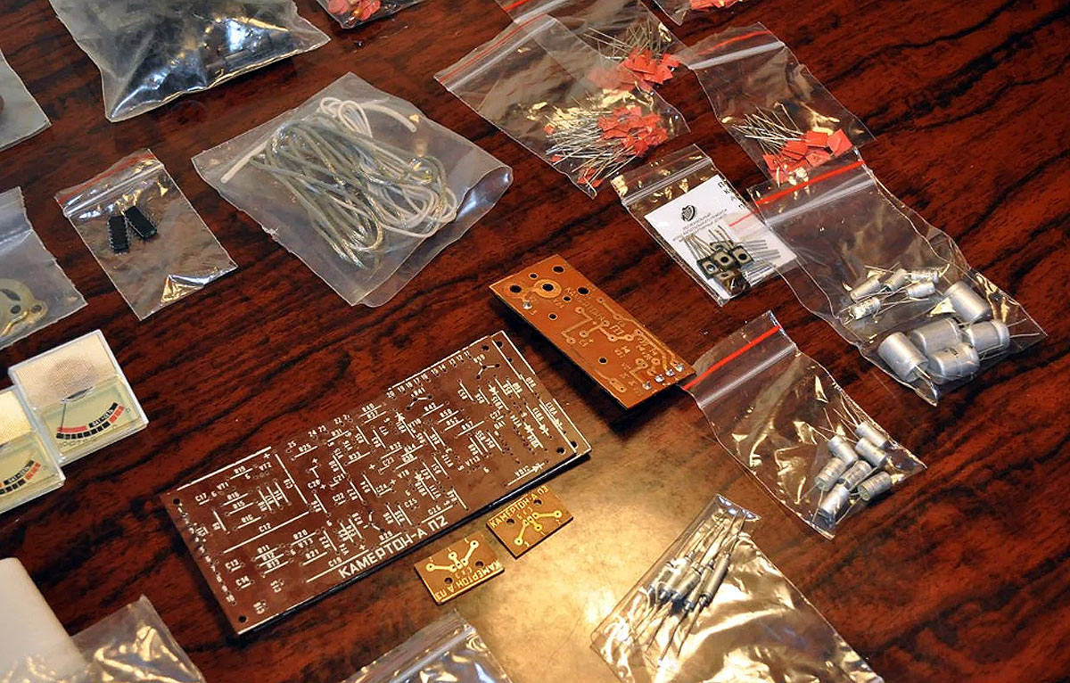 Радиоконструктор *Камертон-А* с 1987 года выпускал Харьковский завод *Эталон*. РК представляет собой полный набор радиодеталей, узлов и элементов, позволяющий собрать высококачественный усилитель ЗЧ. Основные характеристики УЗЧ: номинальная выходная мощность 2х15 Вт; максимальная выходная мощность на нагрузке сопротивлением: 8 Ом - 2х20 Вт; 4 Ом - 2х30 Вт; полоса воспроизводимых частот 20...20000 Гц; номинальное входное напряжение 250 мВ; пределы регулирования тембра на частотах 40 и 16000 Гц не менее 15 дБ; коэффициент гармоник на частоте 1000 Гц не более 0,7%; переходное затухание между каналами не менее 40 дБ. Габариты усилителя 380х280х140 мм. Масса 7 кг.