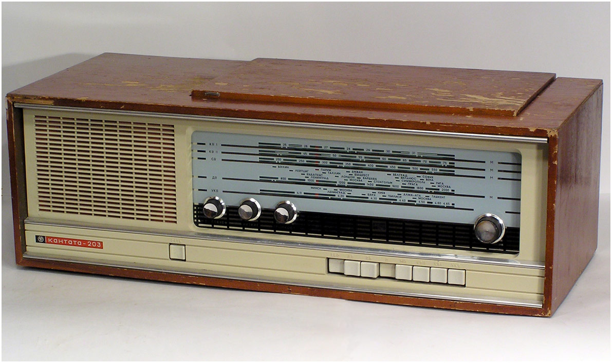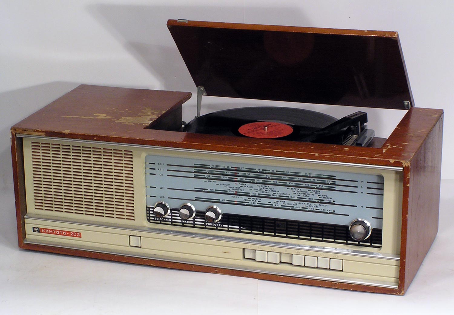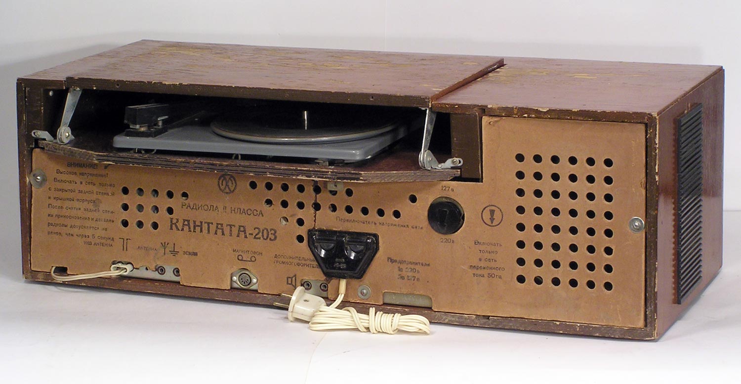 Радиола сетевая ламповая *Кантата-203* с начала 1972 года выпускалась на Муромским заводе РИП. Радиола состоит из всеволнового, супергетеродинного радиоприёмника второго класса и электропроигрывающего устройства III-ЭПУ-28М, позднее III-ЭПУ-38/М. Радиола работает в диапазонах: ДВ, СВ и КВ-1, КВ-2 и УКВ-ЧМ диапазоне. Чувствительность в ДВ, СВ 150 мкВ, поддиапазонах КВ - 200 мкВ, УКВ - 20 мкв. Избирательность по соседнему каналу 30 дБ. Полоса рабочих частот в тракте AM - 100...4000 Гц, УКВ-ЧМ и ЭПУ 100...10000 Гц. Номинальная выходная мощность усилителя 1,5, максимальная 3 Вт. Питание от сети переменного тока 127 или 220 в. Радиолы с 1975 года рассчитаны на сеть 220 в. Потребляемая мощность на приёме 60 Вт, работе ЭПУ 75 Вт. Размеры радиолы 660х315х245 мм, вес 20 кг.