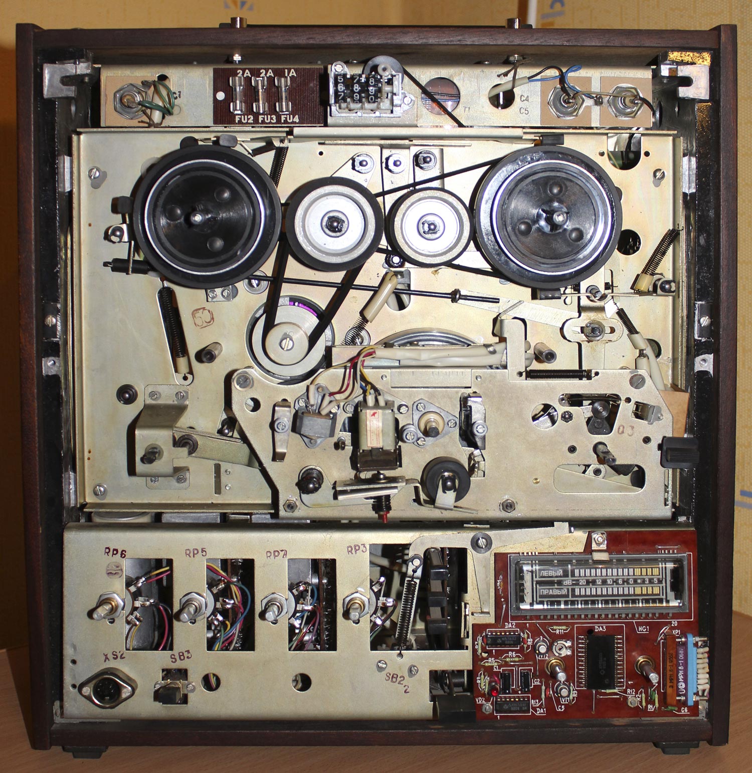 Катушечный магнитофон *Юпитер-203-1-стерео* с 1982 года выпускал Киевский завод *Коммунист*. Магнитофон отличается от магнитофона **Юпитер-203-стерео** оформлением, люминесцентным индикатором и изменениями схемы направленными на улучшение параметров. Он обеспечивает запись моно и стереофонических фонограмм с последующим воспроизведением через внутренние или выносные громкоговорители и стереотелефоны. Предусмотрена возможность: автоматического останова ЛПМ по окончании или обрыве ленты; регулировки уровней громкости; регулировки стереобаланса; раздельной регулировки уровня записи; контроля уровня записи и пиковых перегрузок по индикаторам; работы в режиме **Усилитель**; световой индикации включения. Наличие трехдекадного счётчика расхода магнитной ленты с кнопкой сброса, позволяет находить записи и определять расход ленты. Корпус магнитофона деревянный, облицован шпоном ценных пород, с глянцевым покрытием. В комплект входит 2 **10АС-222**, 2 микрофона **МД-201**, 3 катушки (в том числе 2 с магнитной лентой А4309-6Б). Тип ленты А4309-6Б или А4409-6Б. Номер катушки 18. Скорости 19,05 и 9,53 см/с. Время записи 2х45; 2х90 мин. Диапазон частот звука 40...18000, 40...12500 Гц. Коэффициент детонации ±0,14, ±0,25%. Коэффициент гармоник на ЛВ 3,0%. Относительный уровень шумов и помех канала З-В -54 дБ. Номинальная выходная мощность 2х6, максимальная 2х15 Вт. Входное сопротивление АС - 4 Ом. Потребляемая от сети мощность 90 Вт. Габариты магнитофона 408х444х196 мм. Масса 16 кг. Цена 480 рублей. Экспортный вариант магнитофона выпускался под наименованием *Kashtan-1*.