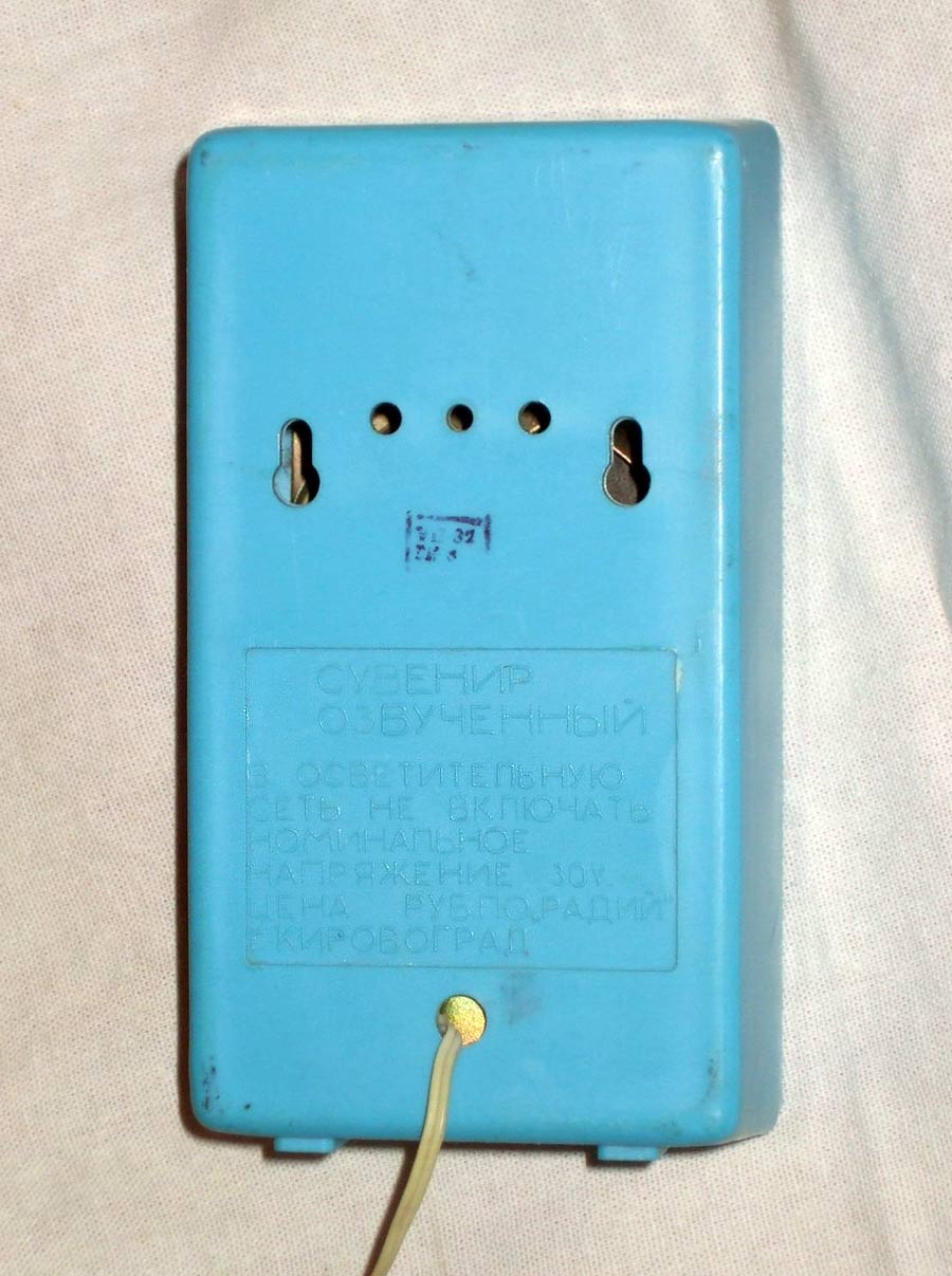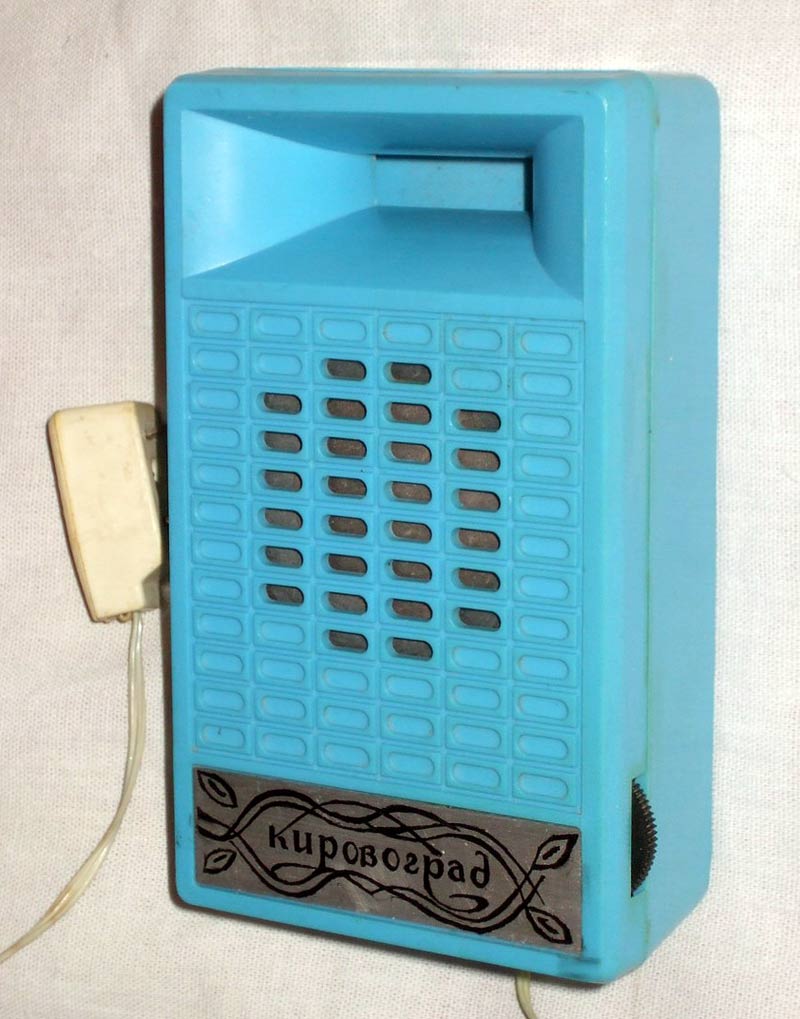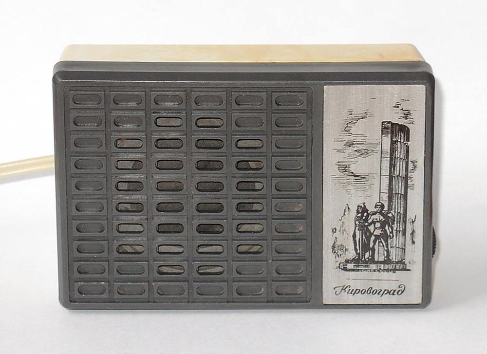 Радиоприёмник абонентский "Кировоград" с 1978 и с 1990 года выпускал соответственно Кировоградский завод Радиоизделий и ПО Радий. Громкоговоритель миниатюрный "Кировоград" в сувенирном исполнении, представляет собой готовое оригинальное изделие и отображает национальные и местные особенности, достопримечательности, выдающиеся события, памятные даты, достижения отечественной науки, техники, культуры, искусства, спорта и предназначен для воспроизведения передач низкочастотного канала канала в трансляционной сети проводного радиовещания. Громкоговоритель выпускался для радиосети с напряжением 15 или 30 вольт, со шнуром и вилкой или штырями для включения в розетку, вмонтированными в корпус. Диапазон воспроизводимых частот 250...5000 Гц. Габариты АГ - 120х65х50 мм. Масса 400 грамм. С 1992 года ПО Радий выпускало громкоговоритель "Кировоград" с достаточно необычным предисловием: Сувенир озвученный.