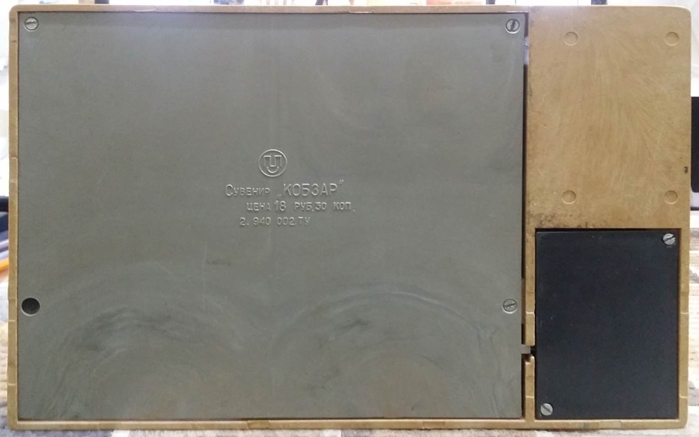 Сувенир электронный *Кобзар* выпускался с 1985 года Каневским заводом *Магнит*, Черкасская область. Представляет собой пластмассовую подставку под перекидной календарь, с вмонтированным радиоприёмником для приёма радиостанций в 2-х поддиапазонах СВ. Радиоприёмник в сувенире прямого усиления на микросхеме 140УД1А, с электронной настройкой варикапом и УНЧ на транзисторах или микросхеме К174УН4.
