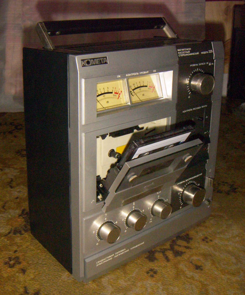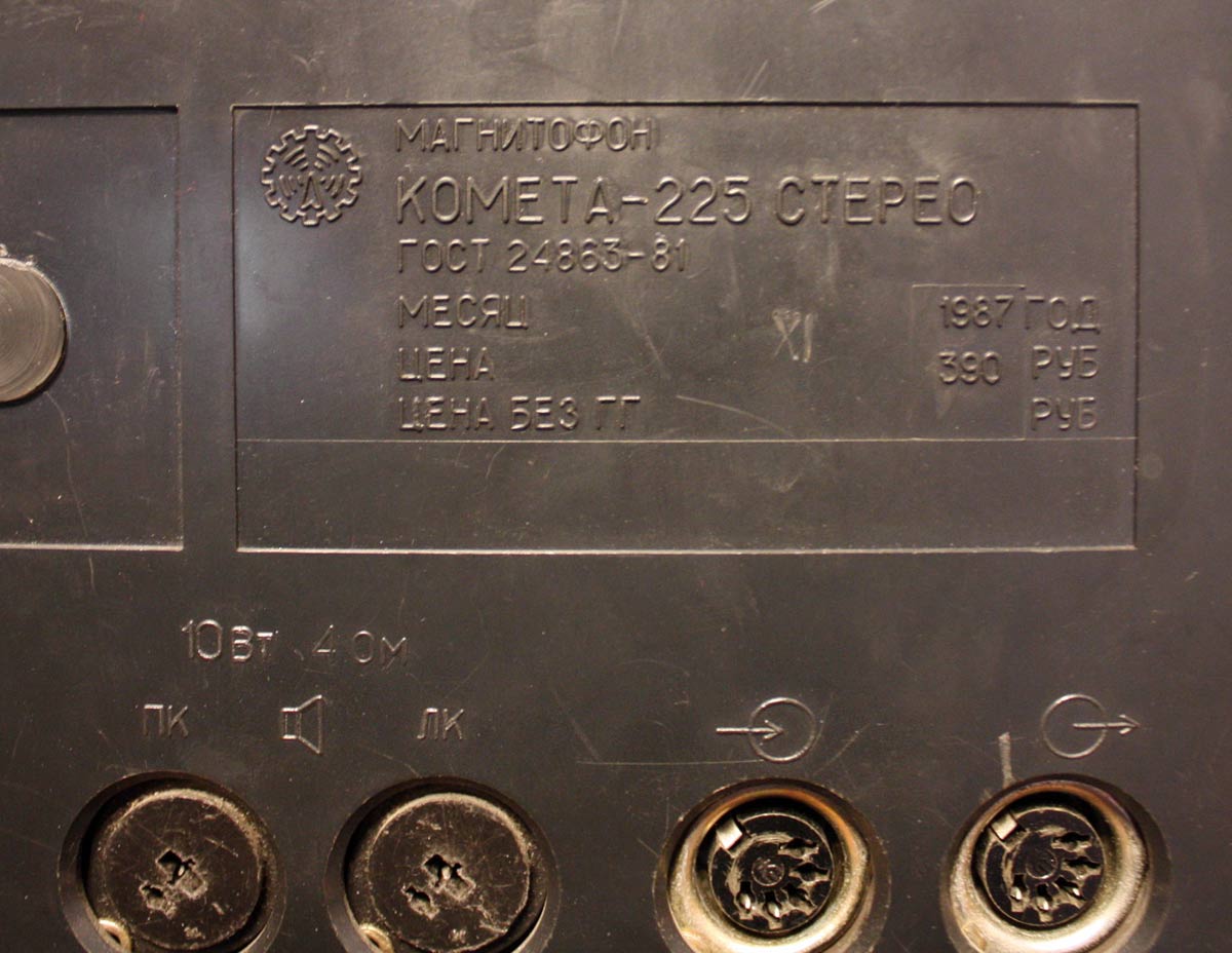 Стереофонические магнитофоны *Комета-225С*, *Комета М-225С-1*, *Комета М-225С-2* и *Комета М-225С-3* выпускал с 1987, 1988, 1989 и 1990 года Новосибирский завод точного машиностроения. Стационарный кассетный стереофонический магнитофон 2-й группы сложности **Комета-225С** (с 1988 года *Комета М-225С*) и её модернизации имеют практически одинаковую схему и конструкцию. Модернизации свелись к незначительному изменению оформления магнитофонов для повышения покупательского спроса. Были и небольшие доработки в схемах. Магнитофон предназначен для записи звуковых фонограмм на компакт-кассеты, с последующим воспроизведением записи. Магнитофон имеет: возможность работы с двумя типами ленты; светодиодные индикаторы уровня записи и воспроизведения и режимов работы; эффективную систему шумопонижения **Маяк**; электронно-логическое управление всеми режимами работ; сендастовую магнитную головку; временный останов ленты; автостоп; счётчик расхода магнитной ленты; начиная с модели **Комета М-225С-2** предусмотрен встроенный пятиполосный эквалайзер; скорость движения магнитной ленты 4,76 см/сек; коэффициент детонации 0,2%; диапазон записываемых и воспроизводимых звуковых частот на хромоксидной ленте 40...14000 Гц; относительный уровень шумов в канале записи-воспроизведения с системой шумопонижения *Маяк* -59 дБ. Номинальная выходная мощность усилителей 2х10, максимальная 2х20 Вт. Потребляемая мощность 80 Вт. Габариты магнитофона 274х329х196 мм. Его масса 9,5 кг. *Комета-225С* - является аналогом магнитофона *Нота-225С*.