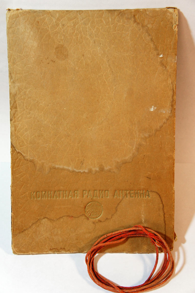 Комнатная настенная *Радио антенна* выпускалась предположительно с 1954 года Московской артелью *Радиопром*. Артель *Радиопром* была образована в 1946 году и преобразована в *Московский завод электроаппаратуры* в середине 50-х. Габариты радио антенны 245х168х6 мм. Толщина провода 2 мм. Материал – картон, оклеенный тиснённой бумагой. На задней стороне верёвка, чтобы вешать радио антенну на гвоздь.