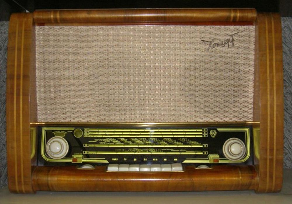 Радиола сетевая ламповая *Концерт* осенью 1955 года разработана Рижским Государственным электротехническим заводом ВЭФ. К 1956 году заводом ВЭФ разработан ряд приёмников и радиол на пальчиковых лампах различного дизайна и параметров. Часть блоков и шасси этих аппаратов были унифицированы. Аппараты имели клавишный переключатель, поворотную магнитную антенну и диполь, если имелся диапазон УКВ. У аппаратов III класса по два динамика, II класса и выше по четыре. Наименования приёмников и радиол были представлены драгоценными камнями: Алмаз, Аметист, Аквамарин, Кристалл, Рубин, Сапфир, Топаз, Янтарь. Была речная серия: Амур, Ангара, Терек, Двина и музыкальная серия: Концерт, Мелодия, Симфония и другие. Некоторые из образцов были переданы для производства на другие заводы СССР, некоторые были изготовлены только опытной партией. В заводской газете Vefietis (ВЭФовец) в конце 1955 года сообщалось, что задание Министерства радиотехнической промышленности СССР о разработке 15 моделей радиоаппаратуры и изготовлении их опытных образцов конструкторами и производственниками ВЭФ успешно выполнено. Большая часть разработанных аппаратов демонстрировалось на Всемирной выставке в Брюсселе 1958 года и были отмечены призами. Много разработок было показано на следующий год на выставке в Нью-Йорке (1959 год). Радиола первого класса *Концерт* была опытным образцом, изготовленном только в нескольких экземплярах. В 1957 году завод выпустил ограниченную серию радиол *Концерт*, при этом её внешнее оформление не изменилось. Электрическая схема радиолы, конструкция и её технические параметры аналогичны радиоле *Люкс*. Какое количество радиол было выпущено - не установлено.