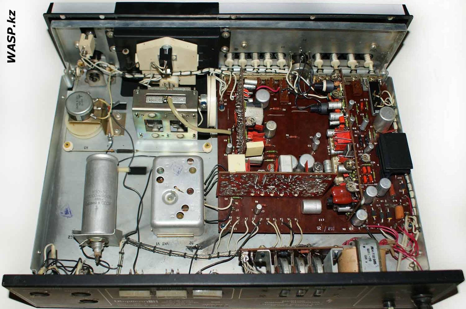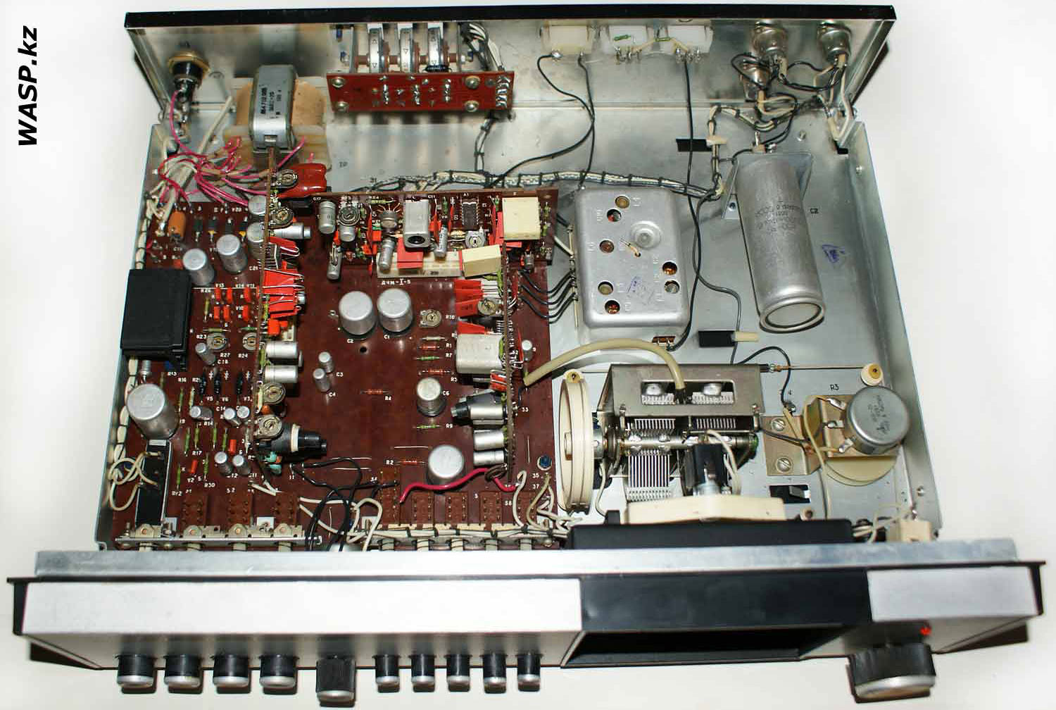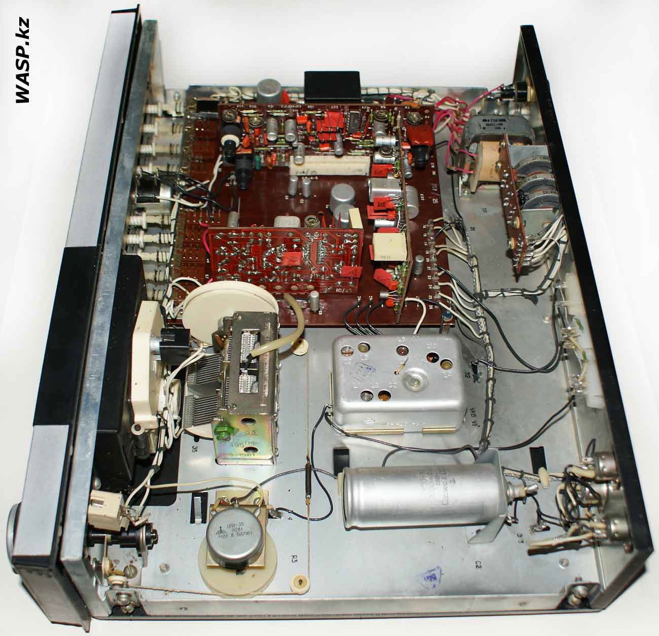 Стационарный транзисторный тюнер *Корвет-104-стерео* с 1982 года выпускал Таганрогский завод *Прибой*. Тюнер собран на 42 транзисторах и 5 интегральных микросхемах. В тюнере применён стереодекодер с временным разделением каналов, предусмотрена индикация точной настройки и наличия стереосигнала. Приём производится в диапазонах УКВ и СВ. В диапазоне УКВ возможен приём моно и стереофонических передач. В УКВ тракте имеется возможность включения БШН, имеется АПЧ и фиксированная настройка на три заранее выбранные станции. Переключение тюнера на стереофонический приём с индикацией происходит автоматически при приёме стереопередач. О точности настройки можно судить по стрелочному индикатору. Прослушивать радиопередачи можно на стереофонические телефоны или громкоговорители через внешний стереоусилитель НЧ с АС. Высокие параметры тюнера позволяют использовать его с высококачественными УКУ. Диапазон частот: СВ 525...1605 кГц и УКВ 65,8...73 МГц. Чувствительность в диапазоне: СВ 100 мкВ, УКВ 3 мкВ. Селективность в диапазоне СВ - 36 дБ, УКВ - 46 дБ. Переходное затухание между каналами 27 дБ. Частотная характеристика тюнера по звуку в диапазоне: УКВ стерео 50...15000 Гц, УКВ моно 31,5...16000 Гц, СВ 125...3550 Гц. Потребляемая мощность 7 Вт. Габариты тюнера 405х325х110 мм. Масса 5 кг. Тюнер разработан в 1980 году.