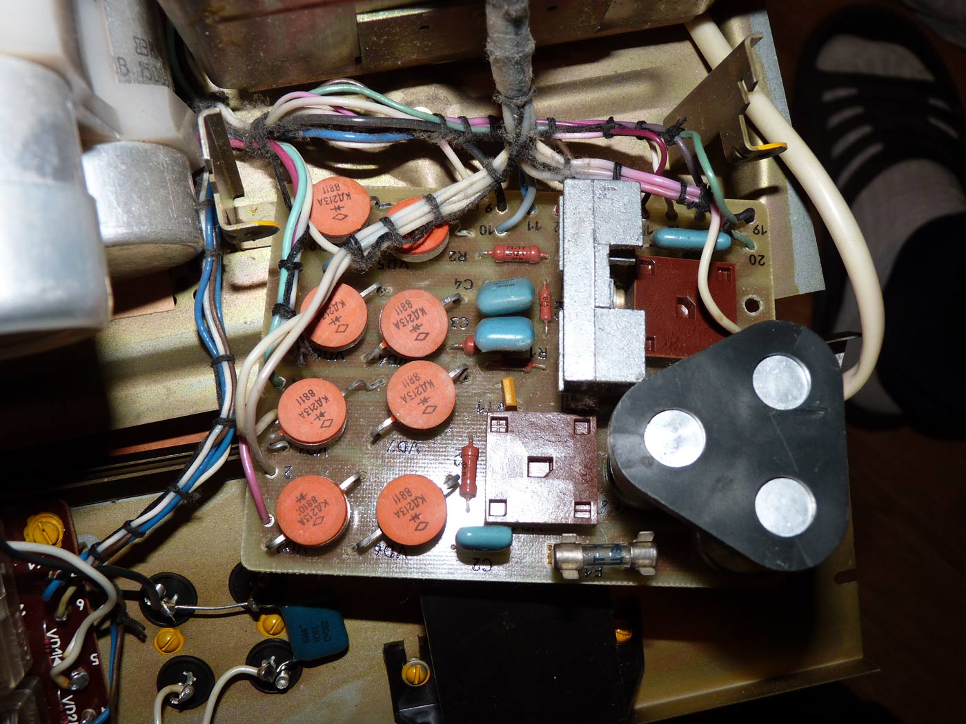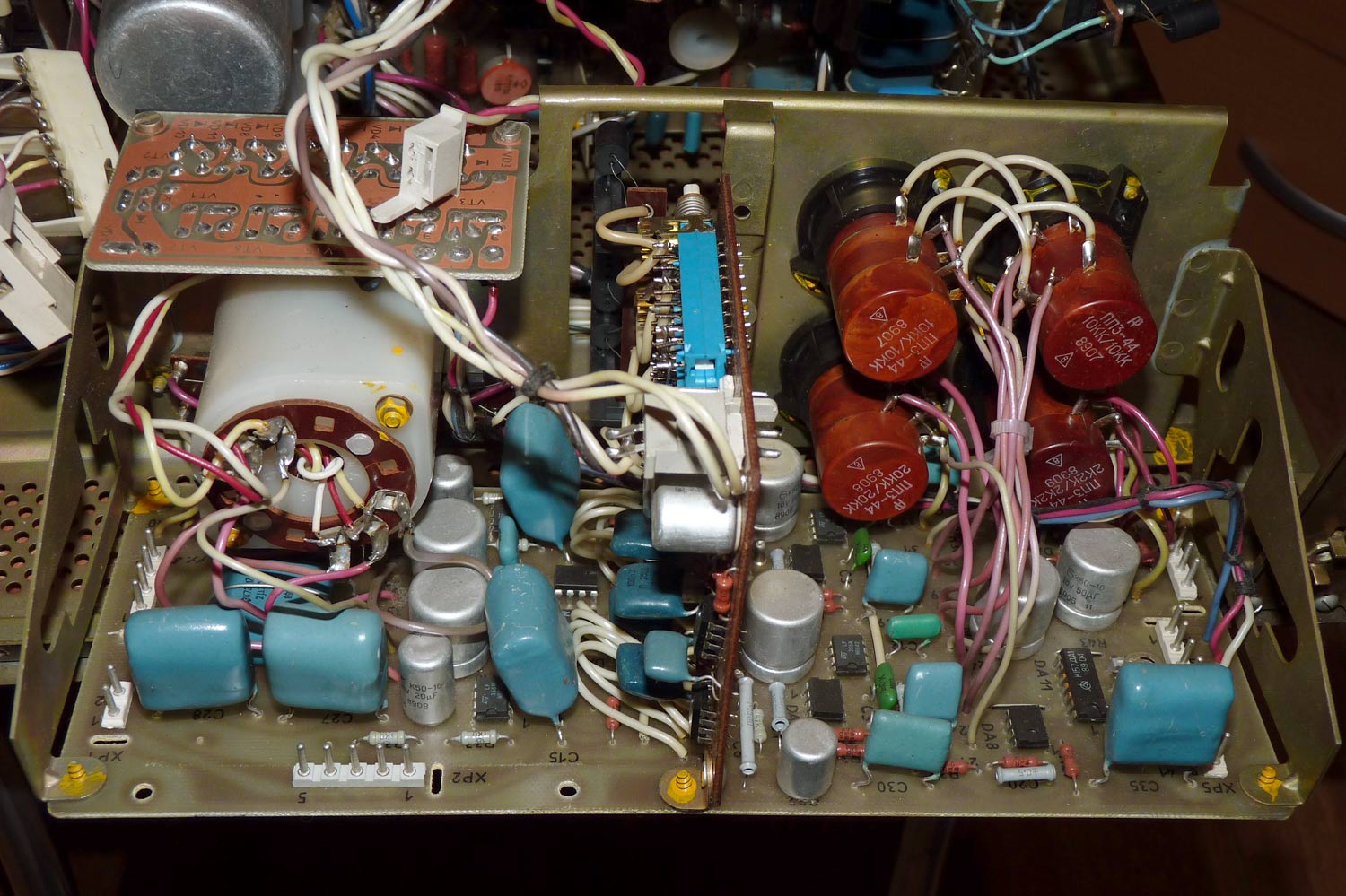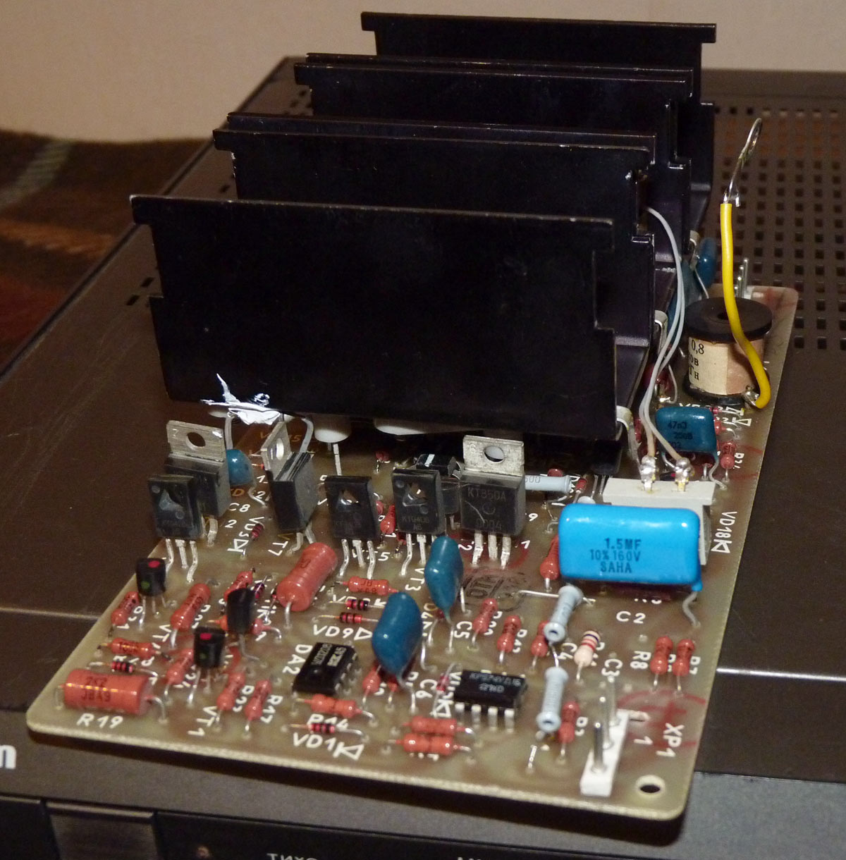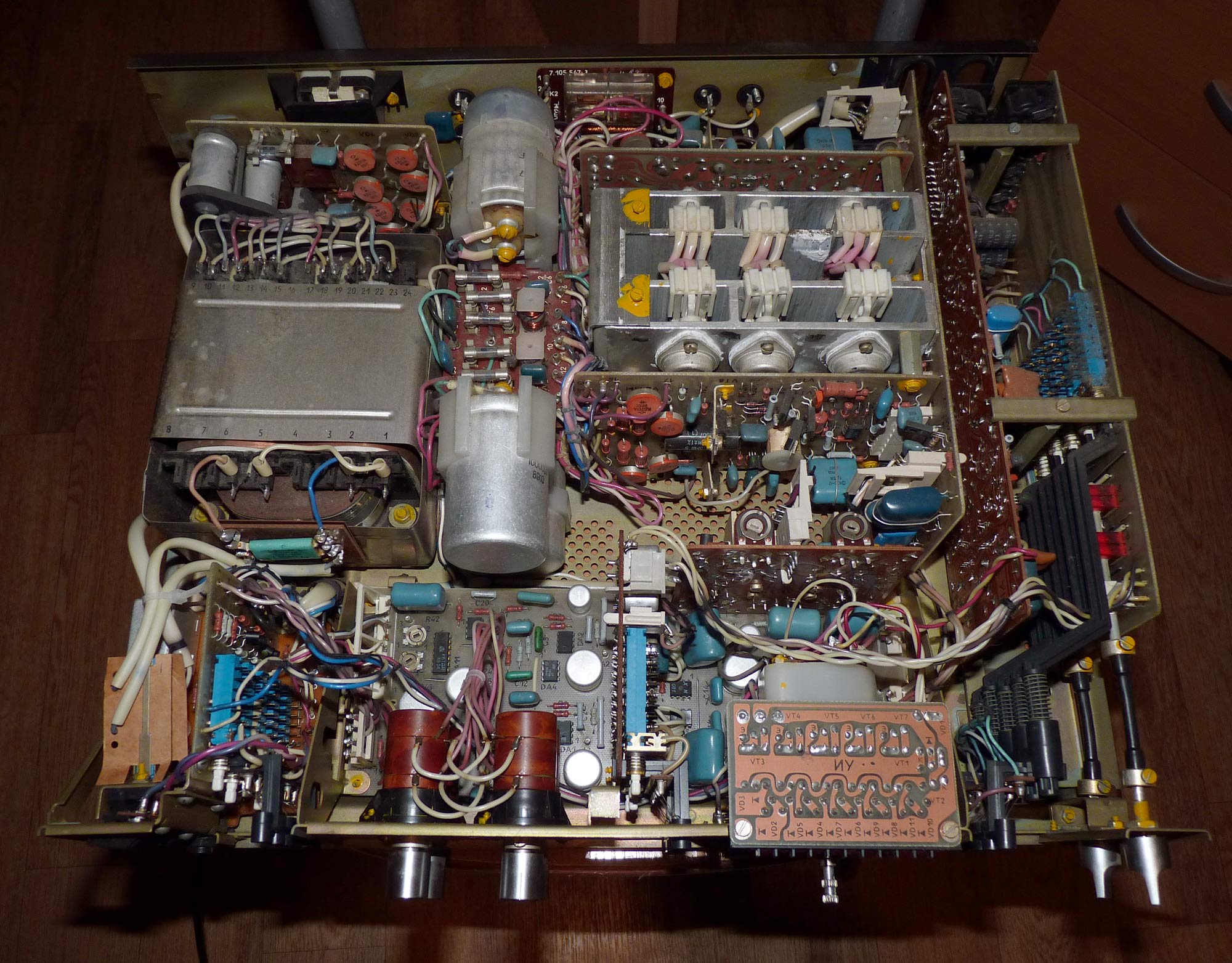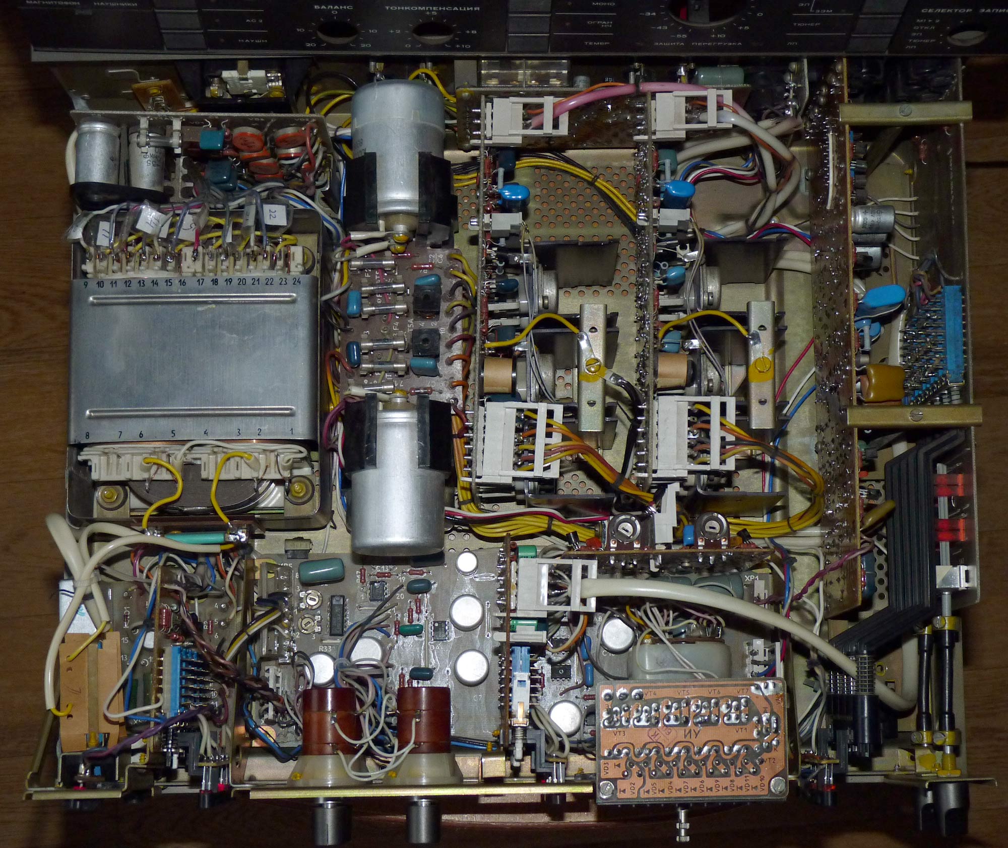 Полный усилитель *Корвет 50У-068С* с 1987 года выпускал АООТ Кировский завод *Ладога*. **Корвет 50-У-068С** это представитель нового поколения полных усилителей. В его создании использованы технические решения усилителя **Бриг-001-стерео**. Впервые здесь применён усилитель мощности класса ЛВС с двухуровневым питанием, что позволило улучшить тепловой режим усилителя. В УМЗЧ имеется защита от КЗ в нагрузке или при перегрузке. Есть переключатель звукоснимателей, с помощью которого кроме электромагнитного можно подключить и электродинамический. Значение максимальной мощности индицируется индикатором. Ограничитель уровня сигнала уменьшает сигнал при использовании АС с мощностью ниже рекомендованной. Регулятор громкости с изменяемой тонкомпенсацией позволяет уменьшить шумы при снижении уровня громкости, а выбор АЧХ в области НЧ согласовывает особенности слухового восприятия с акустическими свойствами помещения. Помехи на инфранизких частотах с ЭПУ ограничиваются фильтром НЧ, а помехи от грампластинок фильтром ВЧ. Коммутация программ, АС и головных телефонов производится кнопочными переключателями, со световой индикацией. Отключаемый выход эл. сети позволяет питать аппараты, работающие вместе с усилителем. Номинальная выходная мощность на выходе для АС сопротивлением 8 (4) Ом 60 (80) Вт. Диапазон рабочих частот 10...70000 Гц. Коэффициент гармоник 0,05 %. Коэффициент интермодуляционных искажений 0,06%. Отношение сигнал/взвешенный шум на выходе для УМ 96 дБ. Габариты усилителя - 430х390х120 мм. Вес 10,8 кг. Цена 650 рублей. Первые выпуски усилителей именовались как *Корвет У-068С* и *Корвет 50-068С*. С начала 1989 года завод совместно с описанным усилителем начал выпуск усилителя *Корвет 100У-068С* с номинальной выходной мощностью на выходе для АС сопротивлением 8 (4) Ом - 65 (95) Вт.