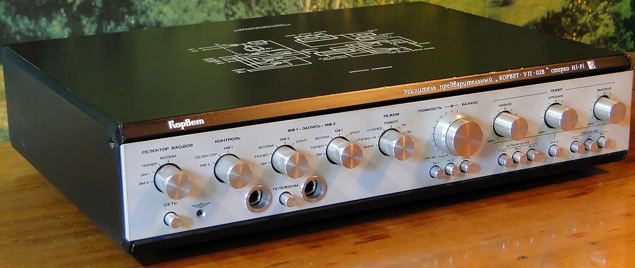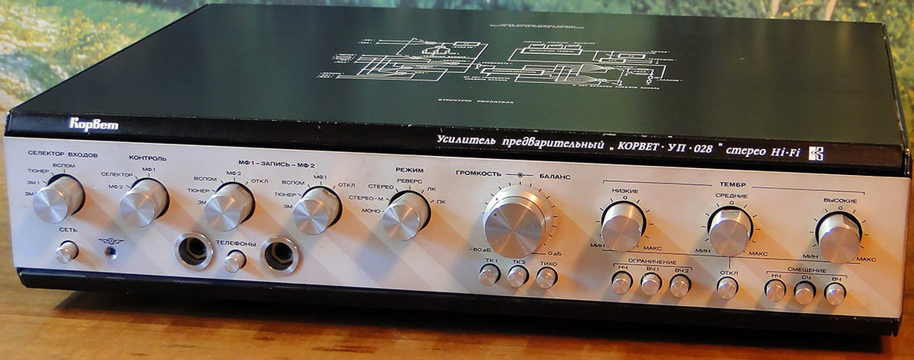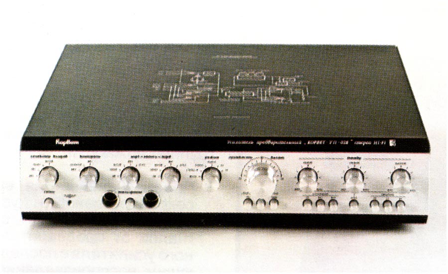 Усилитель предварительный *Корвет УП-028С* с I-кв 1986 года производил Кировский завод *Ладога*. Стереофонический предварительный усилитель **Корвет УП-028С** предназначен для высококачественного усиления, коммутации и частотной коррекции сигналов с проигрывателя c электромагнитной головкой звукоснимателя, проигрывателя компакт-дисков, тюнера, магнитофона и др. Усилитель предварительный имеет низкие собственные шумы и искажения, широкий диапазон усиливаемых частот. Подробнее о параметрах в инструкции по эксплуатации.