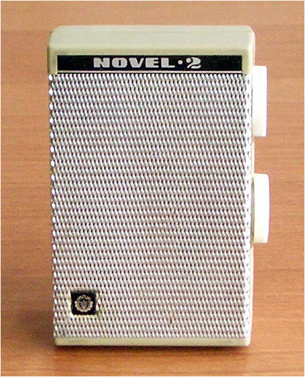 Малогабаритный радиоприёмник *Космос-602* с 1970 года выпускал Сарапульский завод им. Орджоникидзе. Приёмник **Космос-602** (экспортный аналог *Novel-2*) - представляет собой однодиапазонный супергетеродин карманного типа на 7-ми транзисторах. Модель является модификацией двухдиапазонного приемника **Орленок**. Различие в оформлении, конструкции и незначительных изменениях схемы. **Космос-602** - предназначен для приёма в диапазонах ДВ или СВ на внутреннюю магнитную антенну. Реальная чувствительность: на ДВ 4 мВ/м, СВ 2,5 мВ/м. Избирательность по соседнему каналу 20 дБ. ПЧ 465 кГц. Ослабление сигнала зеркального канала 20 дБ. Полоса воспроизводимых частот 700...2500 Гц. Номинальная выходная мощность 30 мВт. Источник питания приёмника: два аккумулятора Д-0,1. Напряжение питания 2,5 В. Потребляемый ток при отсутствии сигнала 10 мА. Работоспособность сохраняется при снижении питания до 1,6 В. Время работы при средней громкости от комплекта аккумуляторов до 10 часов. Габариты приёмника 81 x 54 x 24 мм. Масса 120 грамм. В комплекте кожаный футляр. Радиоприёмник *Космос-602* был выпущен весьма ограниченной серией (~ 100 штук), акцент сделали на выпуске экспортной модели *Novel-2*, количество которых исчислялось сотнями тысяч. Приёмник *Novel-2* продавался и в СССР, но обычно как неликвид и завозился дипломатами, моряками, туристами и т.д.