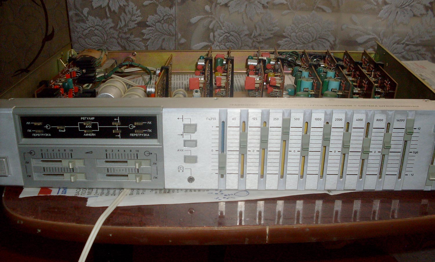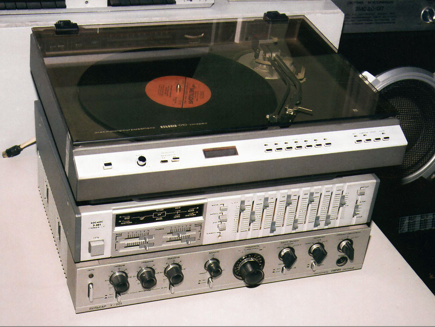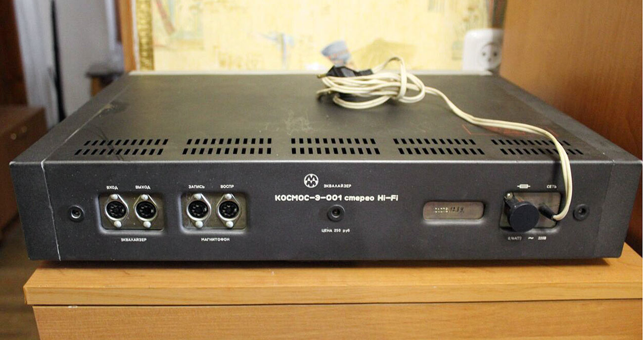 Графические эквалайзеры *Космос-Э-001С* и *Космос Э-101С* с 1988 и 1990 года выпускал Омский завод *Автоматика*. Эквалайзер **Космос-Э-001С** представляет собой десятиполосный регулятор тембра, предназначенный для оперативного управления АЧХ звуковых трактов бытовой аппаратуры с целью компенсации её АЧХ и искажений, вносимых АС и помещением. Эквалайзер рассчитан на работу с тюнерами, электропроигрывателями, магнитофонами и УКУ. Встроенная система шумопонижения позволяет уменьшить шум фонограммы. Регуляторы уровня и индикаторы перегрузки дают возможность избежать перегрузки УМ. Имеется слуховой контроль на стереотелефоны. Диапазон рабочих частот 20...20000 Гц. Коэффициент гармоник 0,04%, интермодуляционных искажений 0,12%. Переходное затухание между каналами -60 дБ. Отношение сигнал/ шум -100 дБ. Число полос - 10. Улучшение отношения сигнал/шум при включенной ШП 10 дБ. Потребляемая мощность 15 Вт. Габариты ЭК 460х335х91 мм. Вес 6 кг. Цена 250 рублей. Выпускаемый с 1990 года эквалайзер *Космос Э-101С*, кроме наименования не отличается от описанного выше эквалайзера *Космос-Э-001С*.
