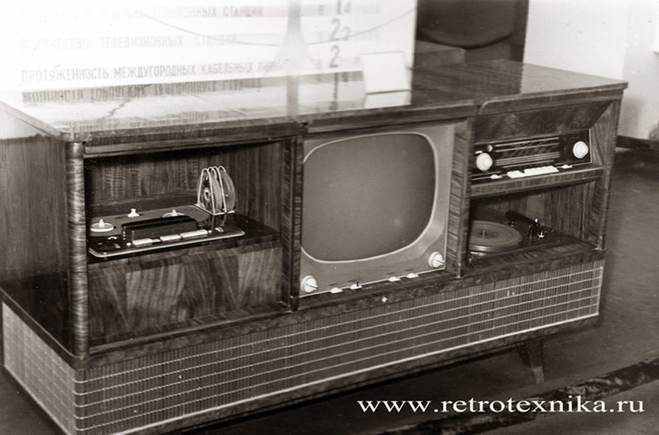 Комбинированная установка *Кристалл-101* в количестве 84 экземпляров была изготовлена на Московском телевизтонном заводе с марта по август 1958 года. Автор разработки Ю.М.Ромадин. Консольная установка **Кристалл-101** объединила в общем футляре телевизор 2 класса **Рубин-102**, с размером изображения 340х450 мм, всеволновый радиоприёмник 1 класса **Люкс**, двухдорожечный реверсивный магнитофон 1 класса **Мелодия МГ-56** и автоматическое универсальное проигрывающее устройство расчитанное на прослушивание 10 грампластинок, c автоматической сменой. Существовал и простой вариант установки, где применено универсальное ЭПУ и магнитофон **МАГ-59**. В установке применено 9 громкоговорителей. Номинальная мощность усилителя 8 Вт. Диапазон частот воспроизводимых АС - 50...14000 Гц. Габариты установки 1450х990х620 мм, масса 67 кг.
