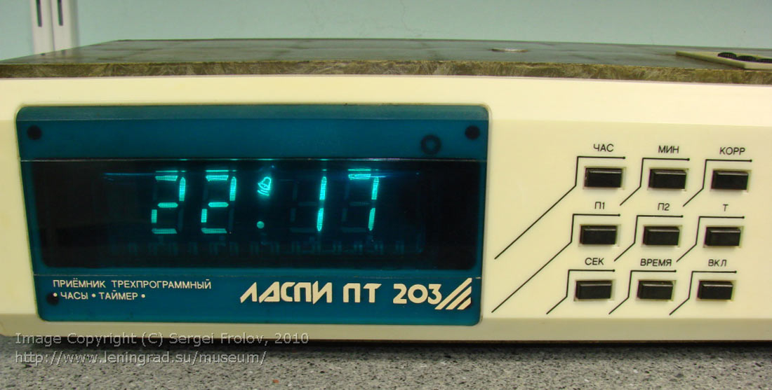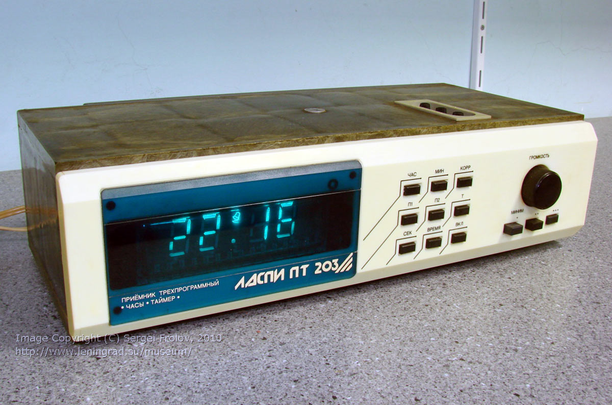 Приёмники трёхпрограммные с электронными часами *Кристалл-201* и *Ласпи ПТ-203* с 1990 года выпускал Севастопольский радиозавод имени Калмыкова. Приёмники выпускались как в виде автономных изделий, так и для встраивания в мебель. Оба приёмника собраны по одинаковой схеме и конструкции, но с разным оформлением и производились совместно для расширения ассортимента выпускаемой заводом продукции.