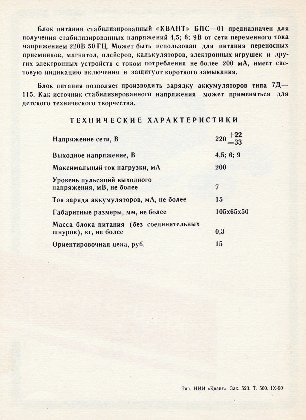 Блок питания стабилизированный *Квант* (БСП-01) с 1990 года выпускал Киевский завод *Буревестник*. Материалы Алексея Михайлова, Москва.