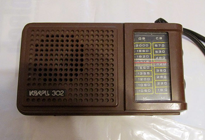 Портативный транзисторный радиоприёмник *Кварц-302* с 1978 года выпускал Кыштымский радиозавод. Радиоприёмник предназначен для приёма программ радиовещательных станций в диапазонах ДВ и СВ. Чувствительность в диапазоне ДВ - 0,8, в СВ - 0,4 мВ/м. Селективность - 20 дБ. Номинальная выходная мощность 100 мВт. Диапазон воспроизводимых частот звука 450...3150 Гц. Питание от батареи **Крона**. Габариты радиоприёмника - 176х112х48 мм. Его масса 540 гр. С начала 1985 года радиоприёмник именовался как *Кварц РП-302*.