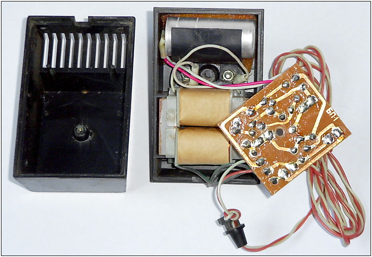 Блок питания *Кварц БП-1* с начала 1978 года выпускал Кыштымский радиозавод. Блок питания **Кварц БП-1** предназначен для питания транзисторных радиоприёмников типа **Кварц** или аналогичных, рассчитанных на питание от источника постоянного тока на одно из питающих напряжений, а это 9, 6 или 4,5 вольт, мощностью до 0,6 ватта и имеющих контактное устройство для подключения элементов питания типа **Крона** или гнездо *ШС* для подключения внешнего источника питания в стационарных условиях. Питается блок питания от сети переменного тока напряжением 220 В. БП с выходным напряжением 9 вольт выполнены с колодкой питания типа **Крона**, с напряжением 4,5 и 6 В со штеккером типа **ШС**. Номинальный ток в нагрузке при напряжении в 9 В - 30 мА, 6 В - 45 мА, 4,5 В - 60 мА. Максимальный ток 100, 100 и 70 мА соответственно. Монтаж элементов печатный, корпус блока питания из пластмассы.