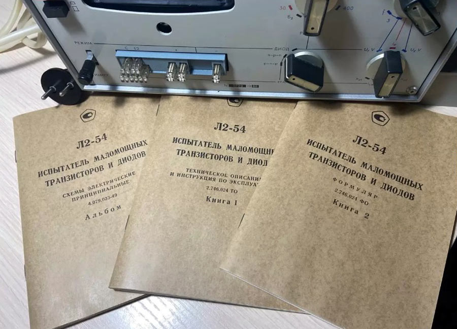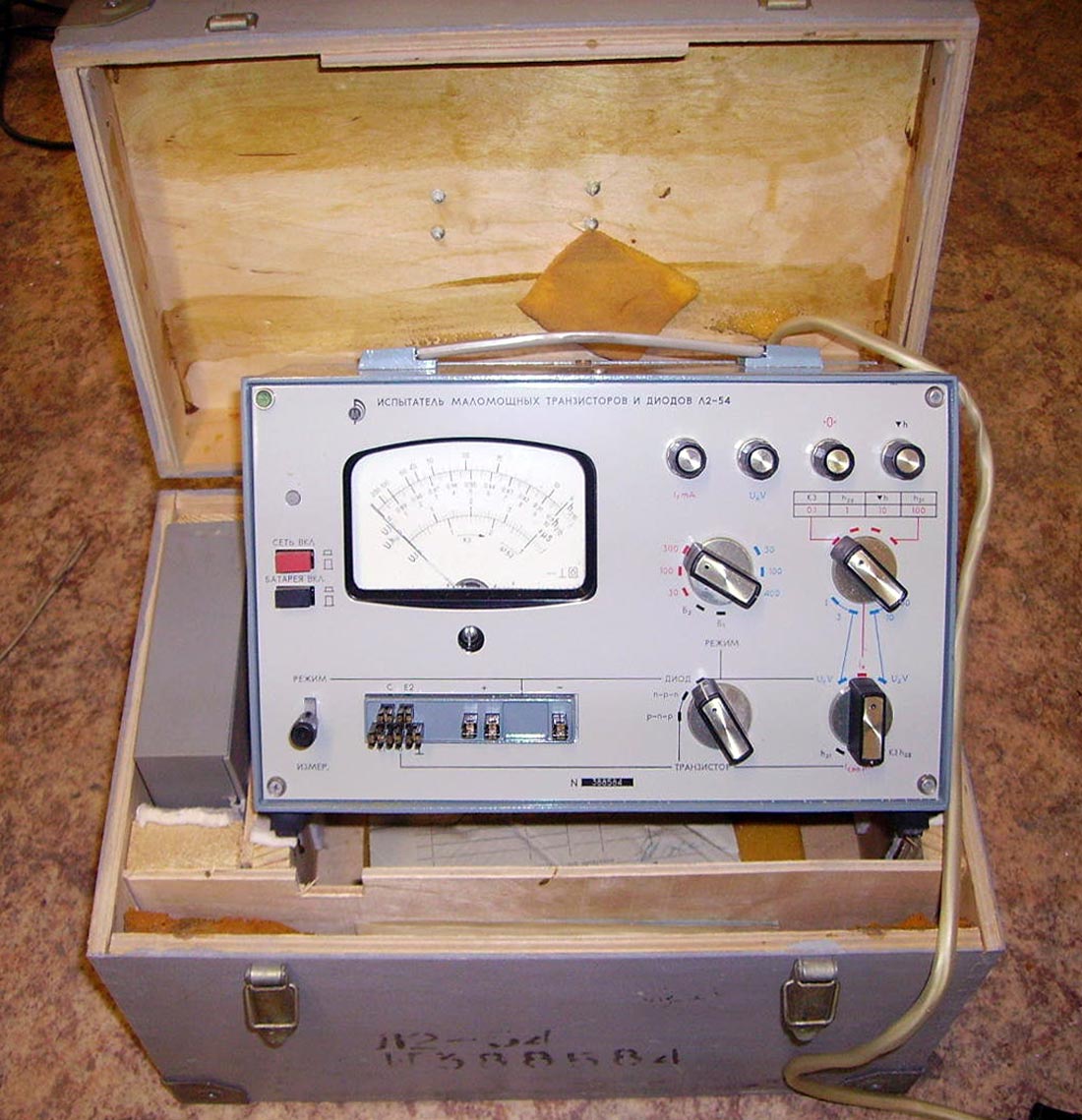 Испытатель маломощных транзисторов и диодов *Л2-54* изготавливался предположительно с 1980 года Минским заводом *Калибр*. Прибор предназначен для определения работоспособности маломощных транзисторов и диодов малой и средней мощности, путем измерения их основных параметров. Питается прибор от сети переменного тока напряжением 220 В или от шести элементов *373*. Потребляемая от сети мощность 12 ВА. Габариты прибора - 300 х 205 х 185 мм. Масса - 6 кг. В модели использовались два рисунка шкалы стрелочных приборов.