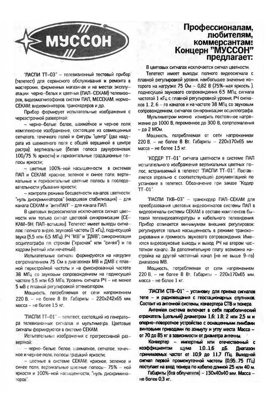 Спутниковый аналоговый ресивер *Ласпи ТСТ-01* выпускался предположительно с 1991 года Севастопольским концерном *Муссон*. Пока нет информации по ресиверу, а та что имеется достаточно общая и относится ли она к этому ресиверу или к другому, не совсем ясно. Имеются и противоречия в наименовании ресивера. На передней панели аппарата стоит наименование *Ласпи ТСТ-01*, сзади того же аппарата *Ласпи СТТ-1*, а в рекламном описании концерна *Муссон* уже *Ласпи СТВ-01*. Тем не менее - спутниковый тюнер!