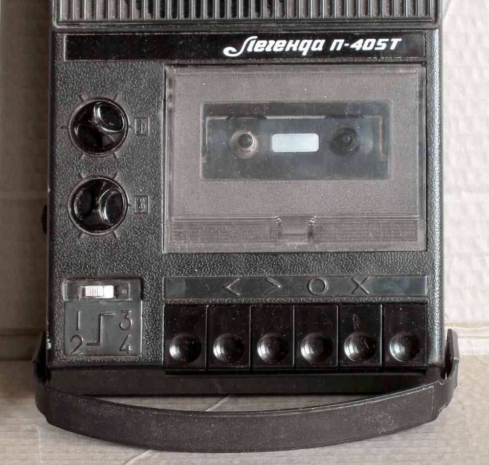 Тифлотехнический кассетный проигрыватель *Легенда П-405Т* с 1989 года выпускало Арзамасское приборостроительное ПО. Специальный тифлотехнический двухскоростной четырёхдорожечный магнитофон, предназначенный для воспроизведения фонограмм МФ2-4 на скорости 2,38 см/с и музыкальных фонограмм на скорости 4,76 см/с через ЛВ и громкоговоритель. В модели имеются; регулятор громкости, тембра ВЧ, регулятор скорости ленты, гнездо для наушников ТМ-4, гнездо для внешних устройств и шнура ДУ. Питание от 6 элементов 343 и от сети через БП. Время работы от батарей 10 часов. Диапазон регулировки скорости 2,38 см/сек 0...50%. Диапазон частотна скорости 2,38 см/с 125...5000 Гц; 4,76 см/с 63...10000 Гц. Выходная мощность 0,8 Вт. Габариты 265х175х85 мм. Вес 2,3 кг.