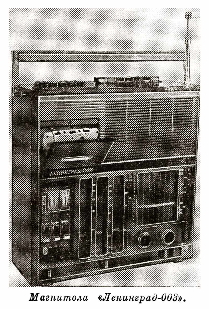 Магнитола высшего класса *Ленинград-003* разработана и опытно выпущена в середине 1972 года. В 1972 году во Всесоюзном Научно Исследовательском Институте Радиоприёма и Акустики (ВНИРПА) была завершена разработка и выпуск Ленинградским заводом *Радиоприбор* небольшой партии переносных магнитол *Ленинград-003*. Не известно сколько точно, по некоторым данным около десятка экземпляров. В модели применён самый совершенный ЛПМ тех лет, от магнитофона *Весна-305* с переделанным механизмом клавиш на вертикальное нажатие. В качестве основы модели был использован радиоприёмник *Ленинград-002*, разработанный здесь же во ВНИИРПА ещё в 1971 году, но до 1975 года серийно не выпускавшийся. Магнитола имеет отдельный индикатор уровня записи, счётчик метража ленты, расположенный на верхней панели магнитолы. Гнёзда для входов и выхода расположены на задней стенке. Скорость протяжки магнитной ленты 4,76 см/сек. Диапазон рабочих частот на ЛВ - 63...10000 Гц, а через встроенную АС - 80...10000 Гц. Остальные характеристики аналогичны соответствующим характеристикам приёмника. Видимо из-за разностей в классах, магнитофонная панель едва тянула на второй класс, реально третий, а приёмник был высшего класса, эксперты Всесоюзной Торговой Палаты не утвердили магнитолу *Ленинград-003* для серийного выпуска. Уже готовые магнитолы были проданы работникам ВНИИРПА и дальнейшая судьба этих магнитол неизвестна. Магнитола *Ленинград-003* изображённая на фото единственное подтверждение разработки, которая была опубликована в журнале *Радио* № 11 за 1973 год.
