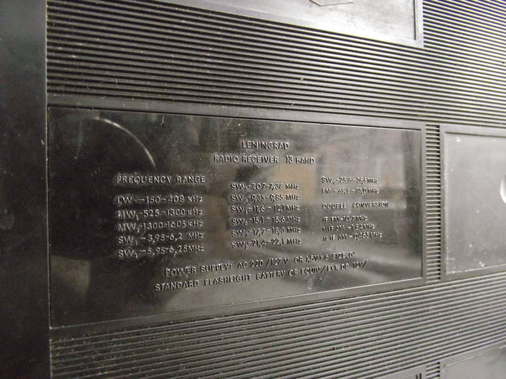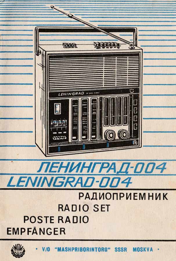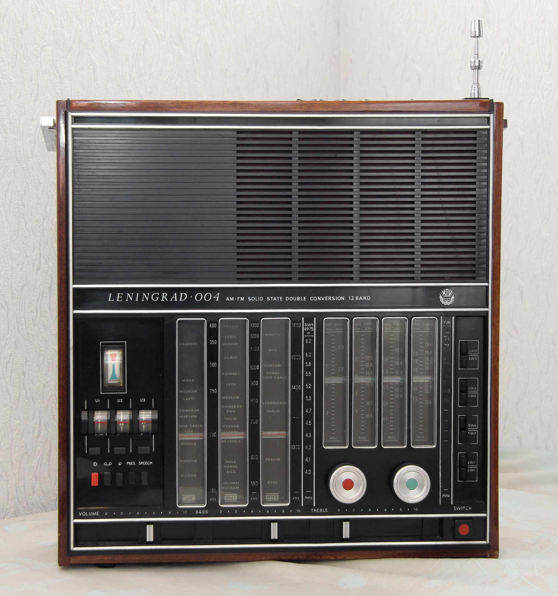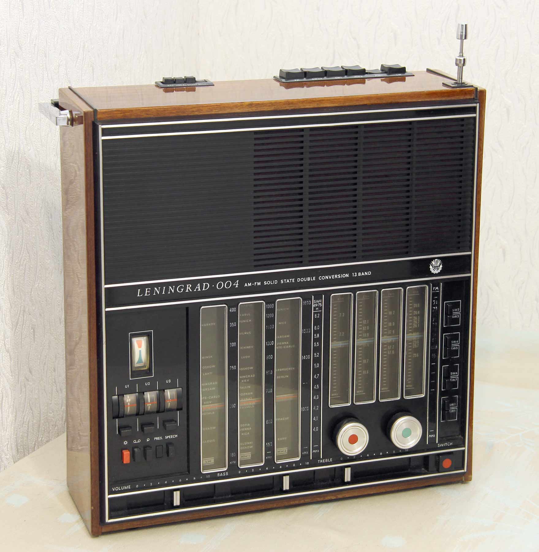 Переносной радиоприёмник *Leningrad-004* с 1975 года выпускал Ленинградский завод *Радиоприбор*. **Leningrad-004** это экспортный вариант серийного приёмника **Ленинград-002**. Радиоприёмник обеспечивает высококачественное прослушивание программ радиостанций в диапазонах ДВ, СВ, КВ и УКВ. В диапазоне КВ приёмник работает с 13 и до 50 метров. УКВ диапазон имел два варианта частот: 64...73 МГц или 88...108 МГц, он зависел от страны, куда приёмник экспортировали. Приёмник имеет возможность зафиксировать 3 настройки в УКВ диапазоне. Есть регуляторы тембров ВЧ и НЧ, переключатель речь-соло, стрелочный индикатор уровня сигнала и питания, 2 шкалы настройки, гнёзда подключения магнитофона на запись, электропроигрывателя для прослушивания грамзаписи через усилитель приёмника, акустической системы, внешней антенны, заземления и головных телефонов. Приёмник собран на 36 транзисторах и микросхеме. Корпус облицован шпоном ценных пород, передняя и задняя стенки футляра из полистирола. Вес модели без батарей 9 кг.