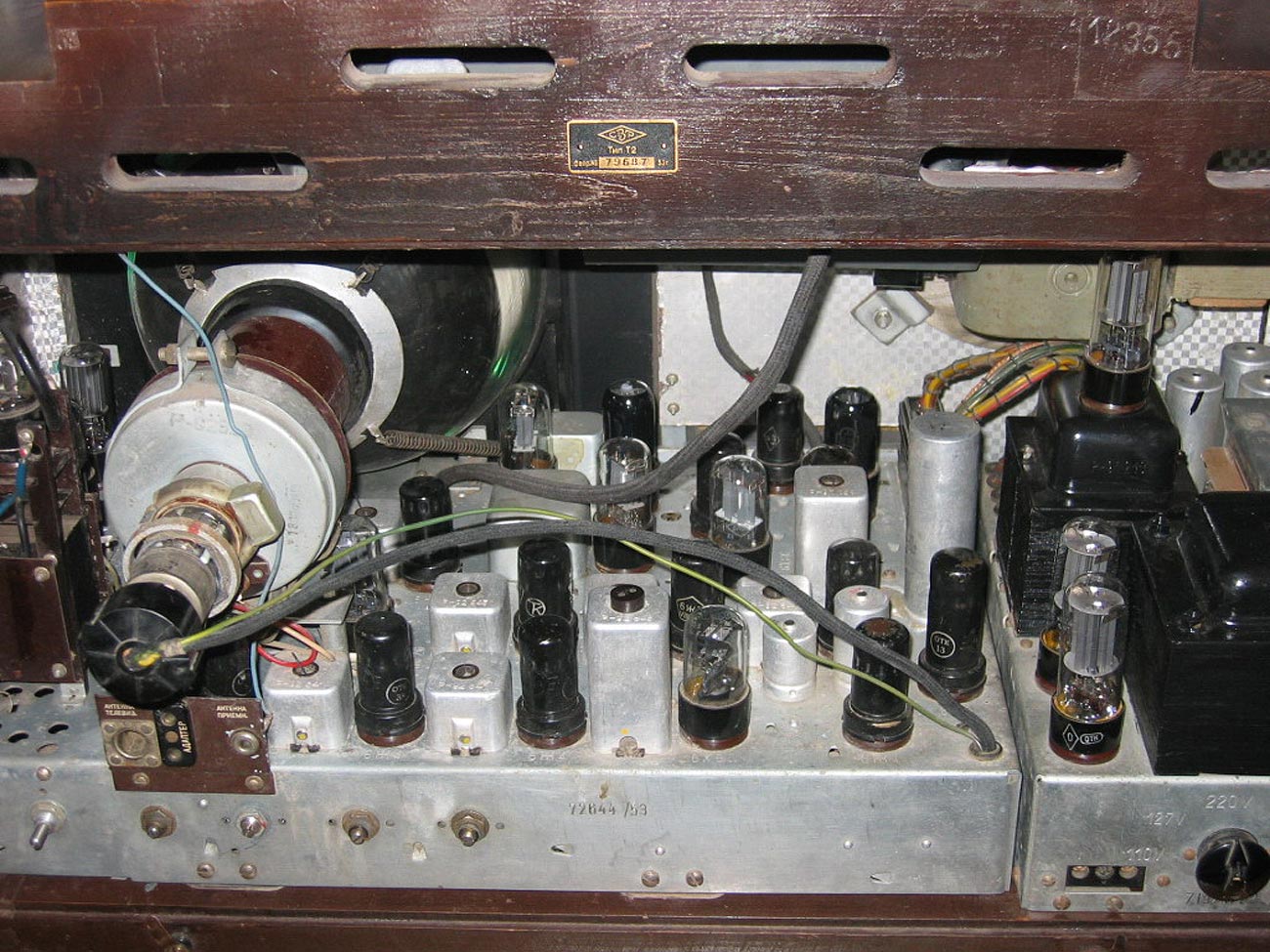 Телевизионный приёмник *Ленинград Т-2* с 1949 года выпускал Ленинградский завод им. Козицкого и завод Саксенверк г. Радеберг (ГДР). Телевизор **Ленинград Т-2** это модификация модели **Ленинград Т-1**. Телевизор создан на заводе имени Козицкого, некоторое время там выпускался, затем передан на завод Саксенверк для увеличения количества выпускаемых телевизоров и экспорта. Телевизор предназначен для приема трех телевизионных программ, приема радиостанций, в диапазонах ДВ, СВ, КВ и УКВ-ЧМ (используется высокочастотная часть приемника *Ленинградец*, смонтированного в телевизоре), а также для прослушивания грамзаписи от внешнего проигрывателя. В телевизоре **Ленинград Т-2** применён кинескоп 23ЛК1Б или ЛК-230 в первых выпусках. Размер изображения 180х135 мм. Чувствительность по каналу изображения 500 мкВ. Потребляемая мощность 320 Вт, при приёме радиостанций 120 Вт. Выходная мощность звука 2,5 Вт. Диапазон частот 100...5000 Гц. Чёткость 400 линий. Установка оформлена в деревянном, отделанным шпоном под ценные породы дерева футляре с размерами 780х400х460 мм. Масса модели 52 кг. Питание от сети переменного тока напряжением 110, 127 или 220 в. Экран защищён небьющимся стеклом и подвижной шторкой. На верхней панели расположено управление радиоприёмником. На задней стенке расположены регуляторы частоты строк и кадров, размера строк, кадров, центровки строк и кадров. Кроме того, сзади аппарата расположены гнёзда подключения антенн и звукоснимателя, переключатель напряжения сети, предохранители. Задняя стенка приёмника съёмная, при её снятии телевизор автоматически отключается от сети.