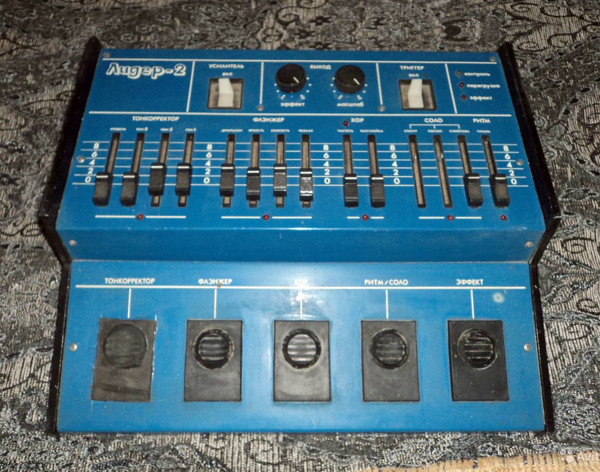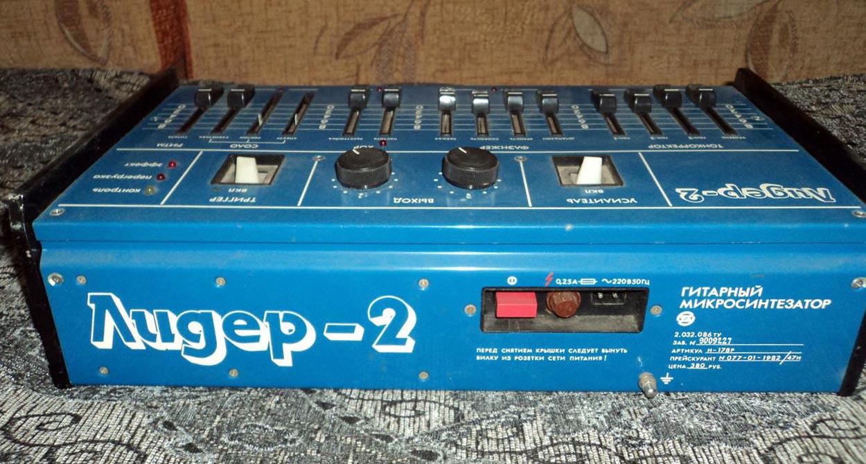 Микросинтезатор *Лидер-2* выпускали с 1988 года. Микросинтезатор разработан для музыкантов, играющих на электрогитаре в составе джазового оркестра. С его помощью можно получить следующие современные звуковые эффекты: «роктон», «субоктава», «хор», «фленжер» и «тонкорректор». Первый из них придает звучанию певучесть и мелодичность, второй делает его похожим на звучание органа, третий на звучание двенадцатиструнной гитары или хора, четвертый делает звук объемным, пятый позволяет подчеркнуть характерные для гитары тембры. МС имеет развитую систему регулировок, позволяющих влиять на степень проявления и выразительность музыкальных эффектов. Включение эффекта сопровождается загоранием соответствующего индикатора. Питается микросинтезатор от сети 220 В, потребляя мощность 20 Вт, габариты микросинтезатора - 120х430х350 мм, вес с футляром 10 кг. Цена 350 рублей.