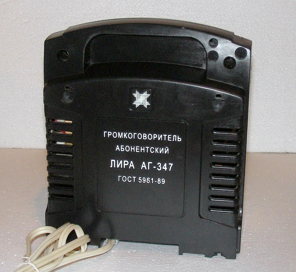 Абонентский громкоговоритель "Лира АГ-347" с 1999 года выпускало ОАО "Ижевский радиозавод". Предназначен для воспроизведения передач НЧ канала сети проводного радиовещания. Номинальное напряжение в сети 30 В. Диапазон воспроизводимых частот 150...10000 Гц. Среднее звуковое давление 0,25 Па. Габариты громкоговорителя 140х162х75 мм. Масса 0,9 кг.