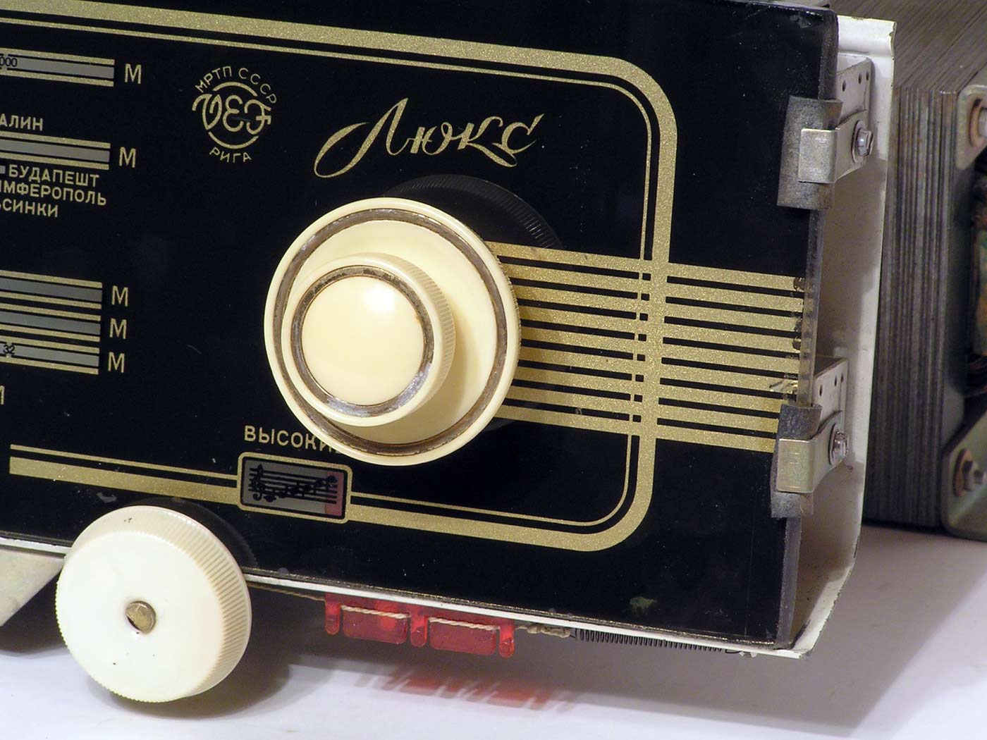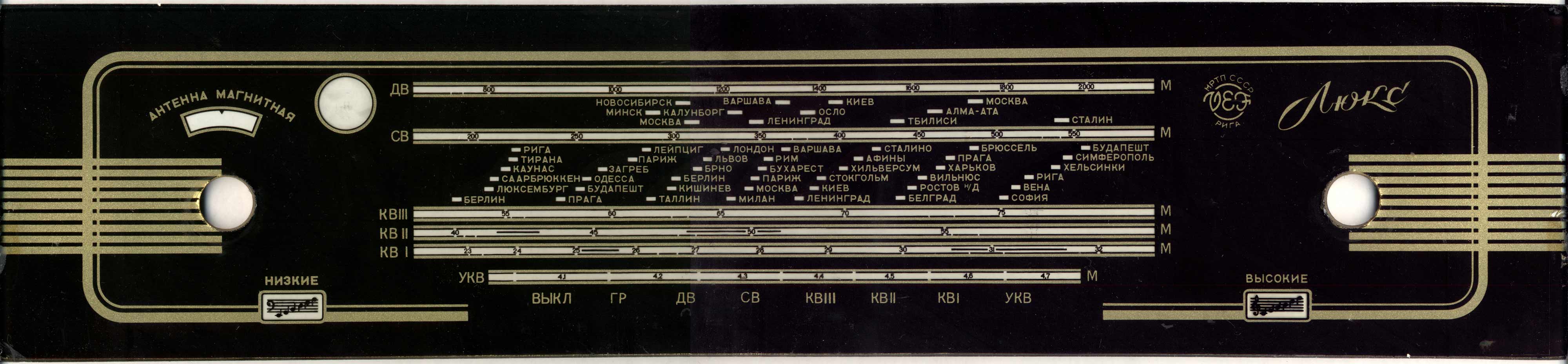 Радиолы *Люкс* и *Люкс-2* с 1956 и с 1958 года выпускались Рижским заводом *ВЭФ*. **Люкс** (РК-156) - это 11-ламповый супергетеродинный АМ-ЧМ приёмник, совмещённый с универсальном ЭПУ. В радиоле шесть диапазонов, встроенные поворотная магнитная антенна и УКВ диполь, клавишный переключатель диапазонов, индикатор точной настройки, автоматическая регулировка усиления, раздельная плавная регулировка тембров, плавная регулировка полосы ПЧ. АС радиолы состоит из двух широкополосных громкоговорителей 5ГД-14, расположенных на передней панели и двух высокочастотных 1ГД-9, расположенных на боковых стенках. Универсальное ЭПУ с асинхронным электродвигателем и приводом на 33 и 78 об/мин, с полуавтоматическим включением и автоматическим выключением имеет пьезокерамический звукосниматель на две корундовые иглы для обычных и долгоиграющих пластинок со сроком службы по 200 часов. Корпус радиолы отделан под ценные породы древесины и полирован. Шкала имеет градуировку в метрах. В радиоле есть гнёзда для подключения наружной антенны, заземления, наружной УКВ антенны, внешнего громкоговорителя и адаптера. Шасси узлы и детали унифицированные, малогабаритные, в последующем они были приняты для производства различных радиол и приёмников рядом радиозаводов. Габариты радиолы 625х450х365 мм. Вес 27 кг. Питание от сети переменного тока в 110, 127 или 220 В. Потребляемая мощность 85 и 100 Вт. Диапазоны частот: ДВ 150...410 кГц, СВ 520...1600 кГц, КВI 9,4...13,0 МГц, КВII 5,2...7,5 МГц, КВIII 3,95...5,5 МГц, УКВ 64,5...73 МГц. ПЧ по АМ тракту 465 кГц, по ЧМ тракту 8,4МГц. Чувствительность на ДВ, СВ, КВ - 50 мкВ, УКВ 10 мкВ. Избирательность по соседнему каналу 56 и 30 дБ. Номинальная выходная мощность 6, максимальная 11 Вт. Полоса воспроизводимых звуковых частот в диапазонах АМ - 60...6500 Гц, ЧМ - 60...12000 Гц, при работе ЭПУ - 70...7000 Гц. В 1958 году радиола модернизирована в модель **Люкс-2**. Оформление радиолы осталось прежним. Была усовершенствована электрическая схема, скорректированы КВ поддиапазоны, диапазон воспроизводимых частот расширился до 50...13000 Гц в диапазоне УКВ-ЧМ и до 60...10000 Гц при работе ЭПУ.
