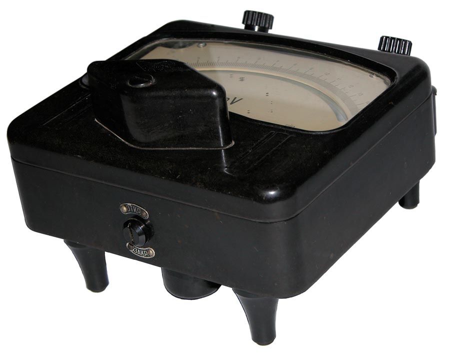 Микроамперметры и милливольтметры серии *ЛМ*. Выпуск с 1954 года. Микроамперметры и милливольтметры типа ЛМ (ЛМ,ЛМ-1) - это переносные лабораторные однопредельные приборы магнитоэлектрической системы с непосредственным отсчетом, предназначенные соответственно для измерения силы тока и напряжения в цепях постоянного тока. Микроамперметры и милливольтметры выпускались на следующие пределы измерений: 0 – 50; 0 – 75; 0 – 100; 0 – 150; 0 – 300; 0 – 500; 0 – 750; 0 – 1000 мка. 0 – 10; 0 – 15; 0 – 30 ; 0 – 45 мв. Класс точности – 0,5. Диапазон рабочих температур от +10 до +350 С. Изменение показаний прибора от ухода температуры в сторону от нормальной (+200С) не превышает +/- 0,5 % от верхнего предела шкалы на каждые 10 градусов. Изменение показаний прибора от влияния внешнего магнитного поля не превышает 2,5 % от данного показания. Габаритные размеры прибора 175х170х129 мм. Вес 1,7 кг. Цена прибора 296 рублей (1954 год).