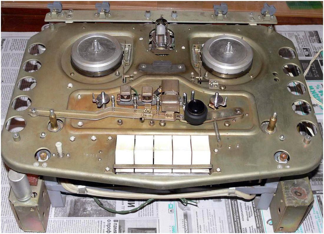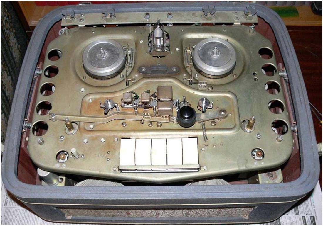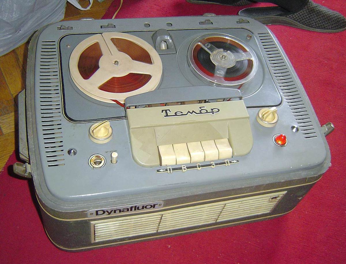 Катушечный магнитофон *МАГ-59М* (Тембр) с начала 1964 года выпускал Горьковский завод имени Петровского. С 1965 года магнитофон при той же конструкции, схеме и оформлении (кроме решётки громкоговорителей, в модели *МАГ-59М* она железная, а в модели *Тембр* пластамассовая, да незначительнызх изменений в схеме и конструкции) стал именоваться как **Тембр**. Предназначен для двухдорожечной записи и воспроизведения фонограмм. Переход с дорожки на дорожку осуществляется перестановкой и переворачиванием катушек. Магнитофон рассчитан на использование магнитной ленты типа 6. Ёмкость катушек 350 м. Продолжительность записи на одной дорожке 30 мин. Скорость 19,05 см/сек. Имеется двусторонняя ускоренная перемотка. В магнитофоне используются 2 раздельных усилителя для записи и воспроизведения, что позволяет прослушивать запись ещё в процессе ее проведения. Диапазон рабочих частот 40...12000 Гц. КНИ 4%. Относительный уровень шумов -40 дб. Коэффициент детонации 0,6%. Напряжение на линейном выходе около 0,7 В. Номинальная выходная мощность 3 Вт. Потребляемая мощность около 180 Вт. Магнитофон собран в деревянном, оклеенном декоративным материалом ящике с ручками переноса. Крышка ящика съёмная. Под ней находится декоративная панель. На панели укреплены крышки, дающие доступ к узлу магнитных головок и прижимному ролику. Над верхней панелью располагаются катушки с лентой, клавиши переключателя рода работы, кнопка паузы, ручки регуляторов уровня записи, громкости и тембра по ВЧ и НЧ. Габариты магнитофона 605х460х285 мм. Вес 33 кг. Цена 275 рублей.