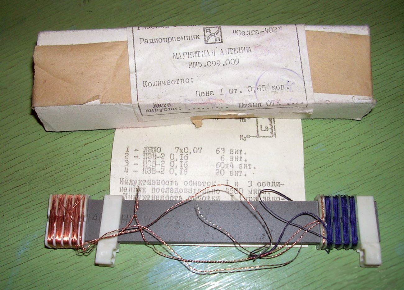 Магнитная антенна для радиоприёмника *Селга-402* выпускалась с 1970 года Рижским радиозаводом им. А.С.Попова. Магнитная антенна поставлялась как комплектующий узел для ремонта приёмников *Селга-402* в радиомастерские и для продажи в магазинах радиотоваров для нужд радиолюбителей.