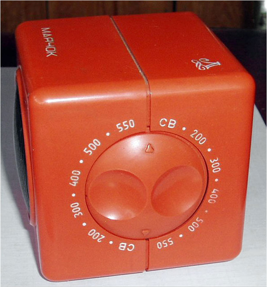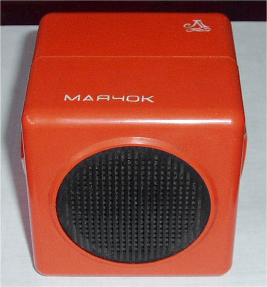 Детский радиоприемник-игрушка *Маячок* с 1988 года выпускал Ленинградский завод *Магнетон*. С помощью радиоприёмника **Маячок** можно прослушивать программы вещательных радиостанций в диапазоне СВ. Приём производится на встроенную магнитную антенну. Радиоприёмник собран по супергетеродинной схеме на многофункциональной микросхеме. Питание от четырёх элементов А-316. Чувствительность приёмника 5 мВ/м. Односигнальная селективность 30 дБ. Номинальная выходная мощность 100 мВт. Диапазон воспроизводимых звуковых частот 450...2800 Гц. Габариты радиоприёмника 79х71х74 мм. Масса 300 гр.