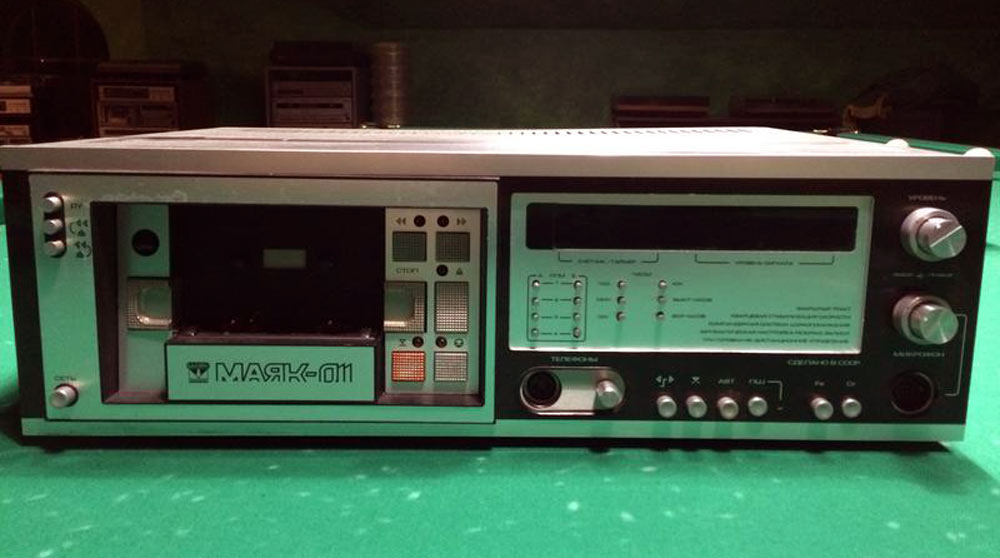 Магнитофон-приставка *Маяк-011-стерео* с 1986 года выпускал Киевский завод *Маяк*. Магнитофон-приставка высшей группы сложности рассчитан на работу с кассетами МК-60 и МК-90, имеет сквозной канал записи-воспроизведения, позволяет прослушивать фонограммы по заранее составленной программе (16 произведений в любой последовательности), вести обзор фонограмм на кассете, отсчет времени их звучания. Предусмотрена автоматическая подстройка токов записи и подмагничивания под конкретную магнитную ленту, ДУ на ик лучах, шумопонижение с помощью компандерной системы, устройство для управления работой ЛПМ, выполненное на основе микропроцессора. Рабочий диапазон звуковых частот 31,5...18000 Гц. Относительный уровень шумов и помех в канале записи-воспроизведения с системой шумопонижения -80 дБ, без системы шумопонижения -58 дБ. Габариты магнитофона-приставки 460x340х150мм. Масса без упаковки 9,8 кг.