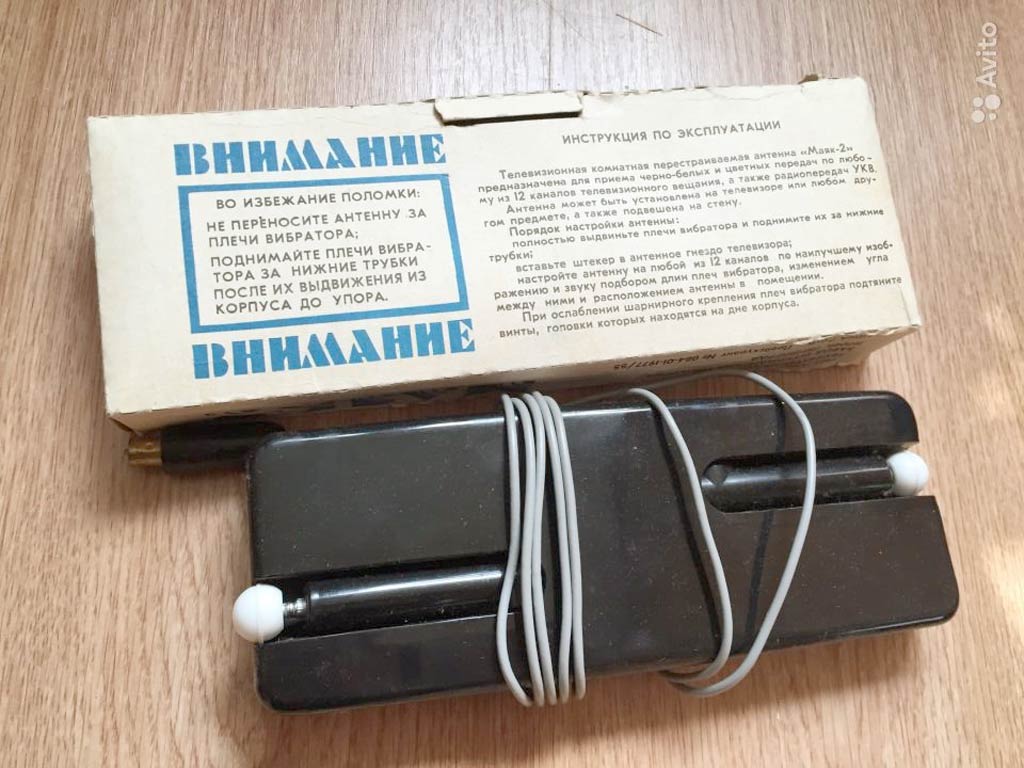 Телевизионная комнатная перестраиваемая антенна *Маяк-2* с 1978 года выпускали в гор. Ленинграде. Пассивная. Преназначена для приёма ТВ в МВ диапазоне.