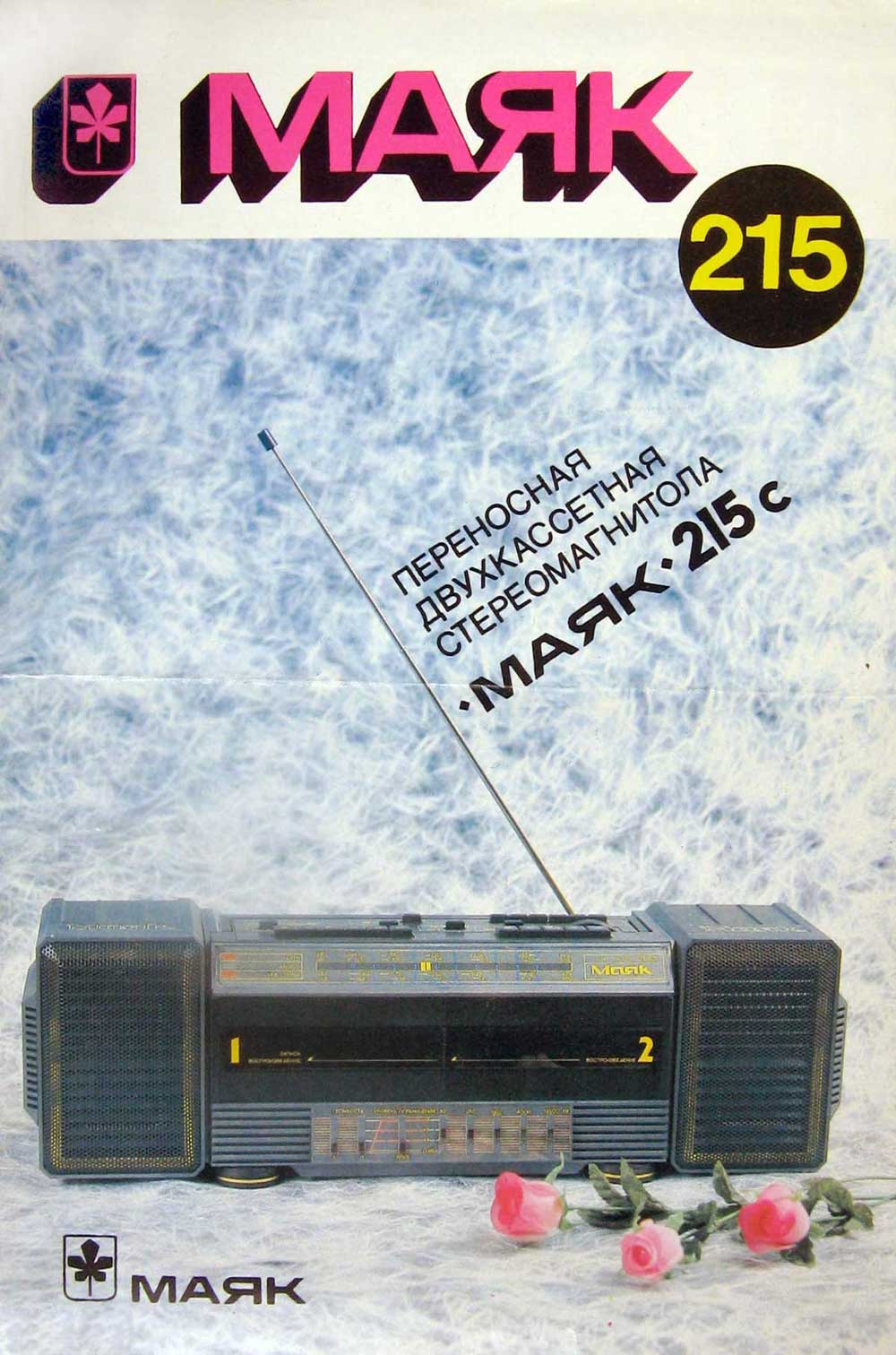 Двухкассетная стереофоническая магнитола *Маяк-215С* с осени 1987 года выпускалась Киевским заводом *Маяк*. Магнитола **Маяк-215** (с 1988 года **Маяк РМ-215С**, с 1990 года **Маяк РМД-215С**) предназначена для приёма монофонических радиопрограмм с AM в диапазонах ДВ, СВ и с ЧМ в диапазоне УКВ, а так же для записи, перезаписи и воспроизведения моно и стереофонических программ. Магнитола объединяет: всеволновый радиоприёмник и два лентопротяжных механизма, первый для записи и воспроизведения речевых и музыкальных фонограмм; второй только для воспроизведения фонограмм, а так же усилители, блок коммутации и питания, акустические системы. Магнитола позволяет производить запись с радиоприёмника, перезапись с кассеты на кассету и запись с внешних источников сигнала. Технические параметры: Скорость магнитной ленты 4,76 см/сек. Коэфициент детонации ± 0,4%. Диапазон частот при работе МП на ЛВ - 40...12500 Гц. Максимальная выходная мощность 2х3 Вт. Питание: сеть 220 В или 8 элементов А-343. Габариты модели 620х165х90 мм. Масса с АС - 5,5 кг.