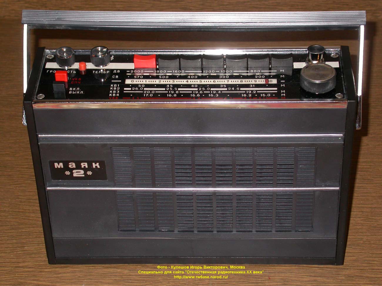 Портативные радиоприёмники *Маяк*, *Маяк-М* и *Маяк-2* с 1974, 1978 и 1982 года выпускал Днепропетровский радиозавод. Модели созданы на основе серийных приёмников *Геолог* и *Орион* и производились специально по заказу министерства обороны для политруков воинских частей. Радиоприёмник *Маяк-2* отличается от *Маяк-М* наличием стандартного УКВ-ЧМ диапазона. Подробнее о радиоприёмниках *Маяк*, *Маяк-М* и *Маяк-2* - в инструкциях.