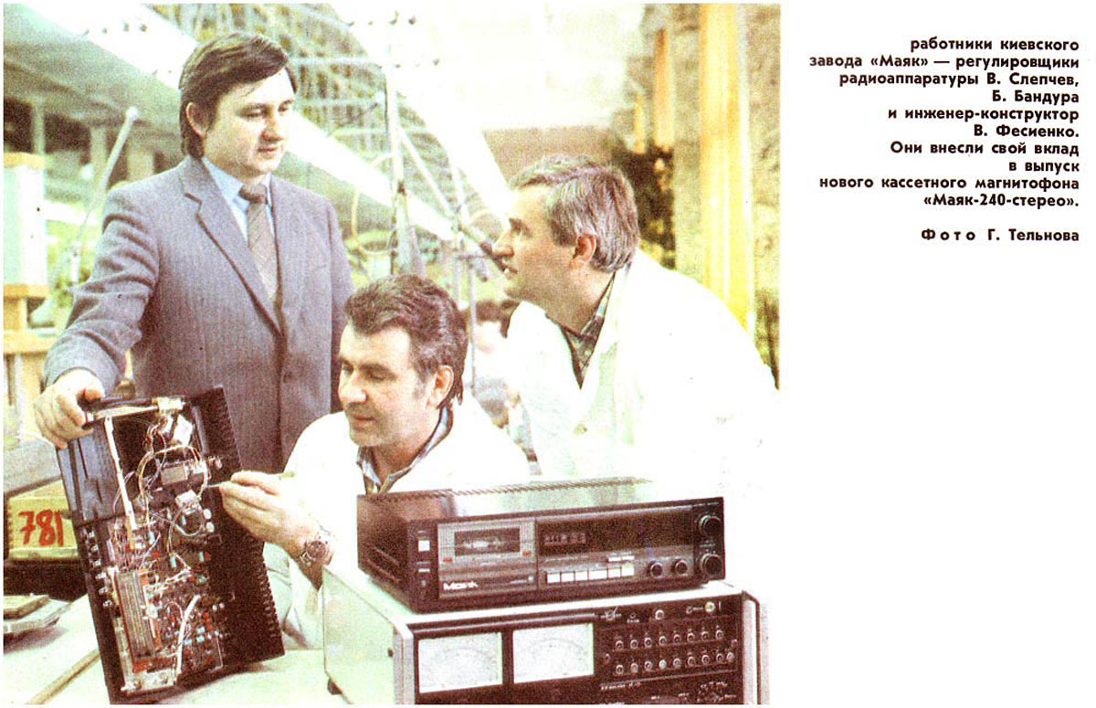 Магнитофон *Маяк М-240С* с 1988 года выпускал Киевский завод *Маяк*. Магнитофон обладает функциями, расширяющими его возможности. В магнитофон введены: встроенный УМ; счётчик расхода ленты, с возможностью работы в режиме **память**; демпфированный кассетоприёмник; люминесцентный индикатор контроля уровня записи или воспроизведения; устройство шумопонижения системы **Маяк**; подсветка кассеты. В модели применены: сендастовые износоустойчивые магнитные головки; световая индикация всех режимов работы; переключатель типа лент; селектор входов. В комплекте АС *10АС-324*. Возможно прослушивание программ на стереотелефоны. Цена МГ - 380 рублей. С 1990 года завод выпускал магнитофон **Маяк М-240С-1**, где заменены лишь АС. С 1992 года выпускался магнитофон **Маяк М-240С-2** аналогичный описанным.