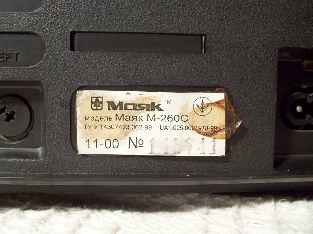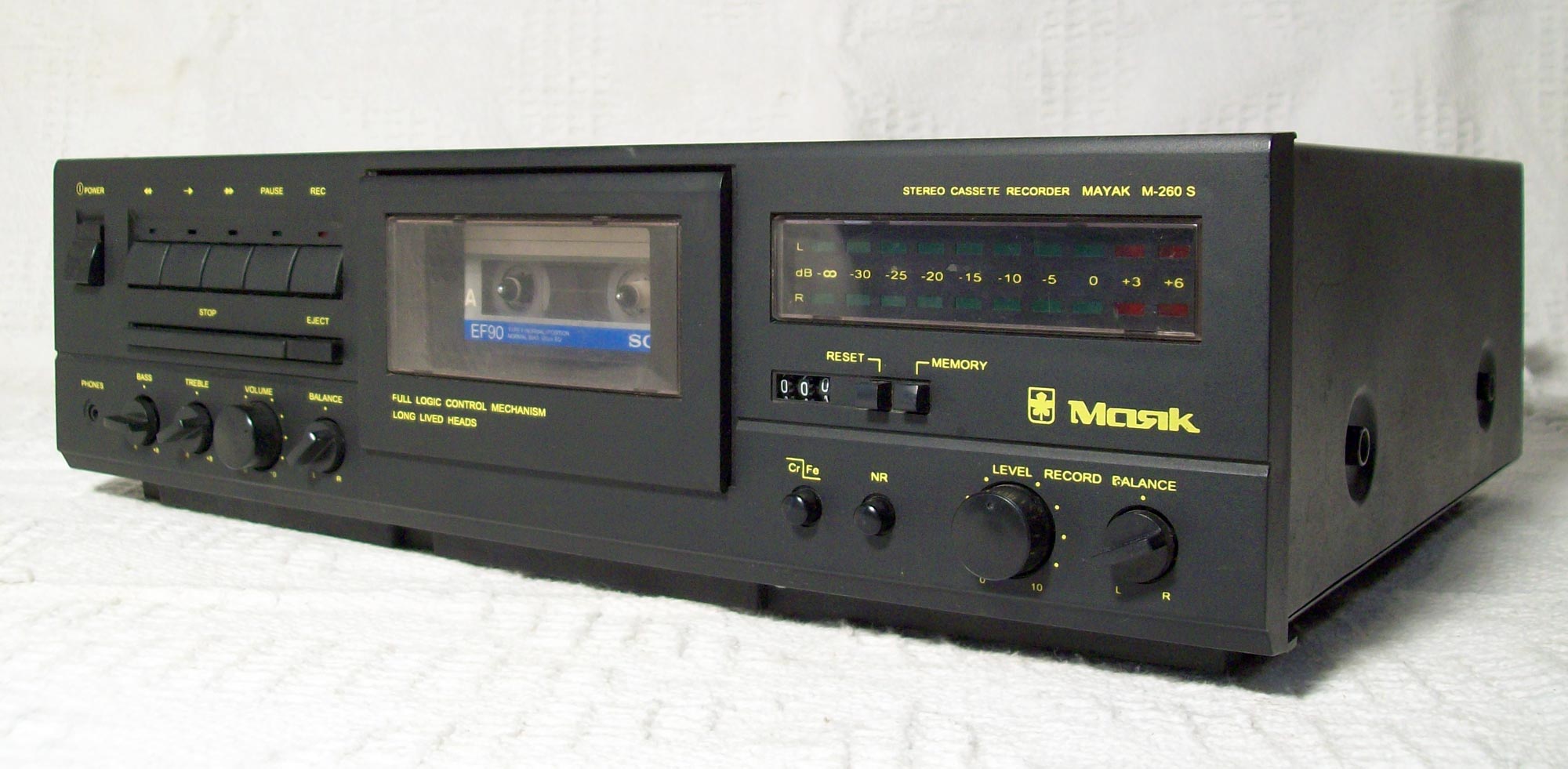 Стереофонический магнитофон *Маяк М-260С* с I-кв 1999 года выпускал Киевский завод *Маяк*. Предназначен для записи или воспроизведения фонограмм на магнитную ленту размещенную в кассетах МК. В магнитофоне предусмотрены функции: запись с любых источников НЧ сигналов; воспроизведение фонограмм через АС и головные телефоны; перемотка магнитной ленты в обе стороны; стирание фонограмм в процессе новой записи; система ШП; раздельная индикация уровня записи или воспроизведения в каждом канале; автоматический останов по окончании ленты и извлечении кассеты; счётчик расхода ленты; возможность отключения АС; возможность переключения режима работы без нажатия кнопки стоп; режим память по нулевому показанию счетчика расхода магнитной ленты; возможность раздельного регулирования тембра НЧ и ВЧ; режим пауза; индикация включения сетевого питания и всех режимов работы магнитофона.