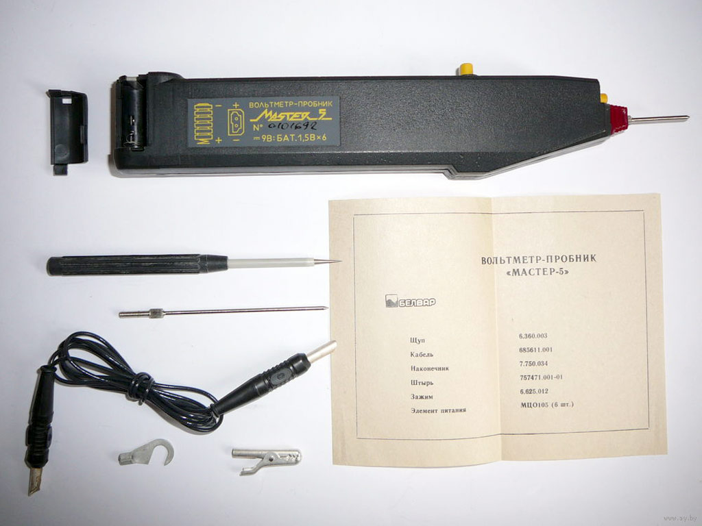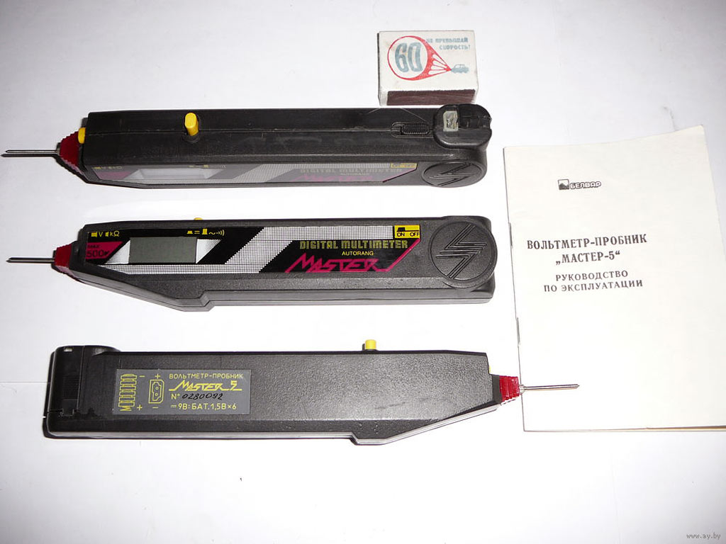 Вольтметр-пробник *Мастер-5* выпускался с 1993 года в Беларуси. Цифровой измерительный прибор, обладающий функциями, необходимыми для выявления неисправностей электронной аппаратуры. Прибор обеспечивает автоматический выбор измерительных диапазонов по напряжениям переменного и постоянного тока, сопротивления и звуковую сигнализацию для прозвонки. Есть 3,5-разрядный ЖК-индикатор и встроенный индикатор полярности измеряемого напряжения.