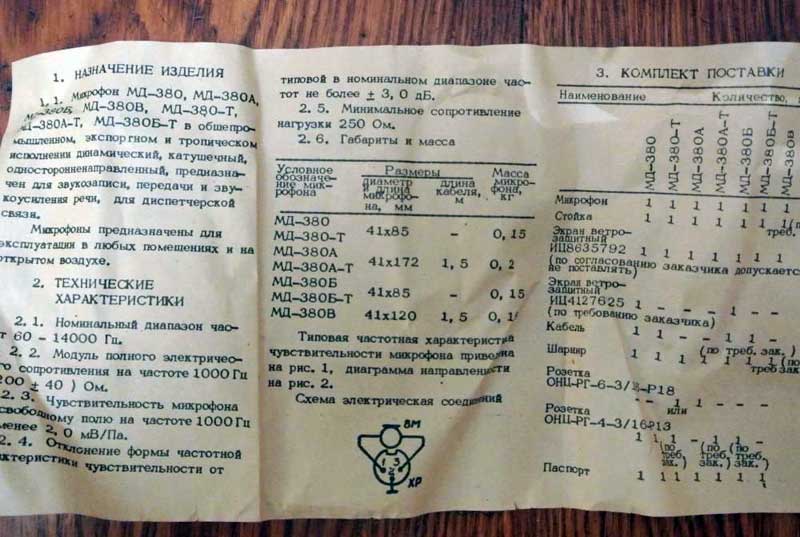 Микрофоны *МД-380* (МД-380,А,Б,В) выпускались с 1988 года Тульским заводом *Октава*. Микрофоны (МД-380,А,Б,В) предназначены для звукоусиления, звукозаписи, диспетчерской связи и других целей. Частотный диапазон звука - 60...14000 Гц. Сопротивление выхода 200 Ом. Габаритные размеры - 24х206 мм. Масса около 200 гр.