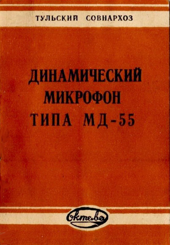 Динамический микрофон типа *МД-55* выпускался с 1955 года Тульский завод *Октава*. Микрофон предназначен для радиовещания, звукозаписи, систем звукоусиления и внестудийных передач. Подробности в инструкции. На фотографиях изображён и микрофон с переходным (согласующим) трансформатором в коричневой коробочке, доработанный Новосибирским заводом *ТочМаш* для комплектации магнитофона *Мелодия МГ-56*.