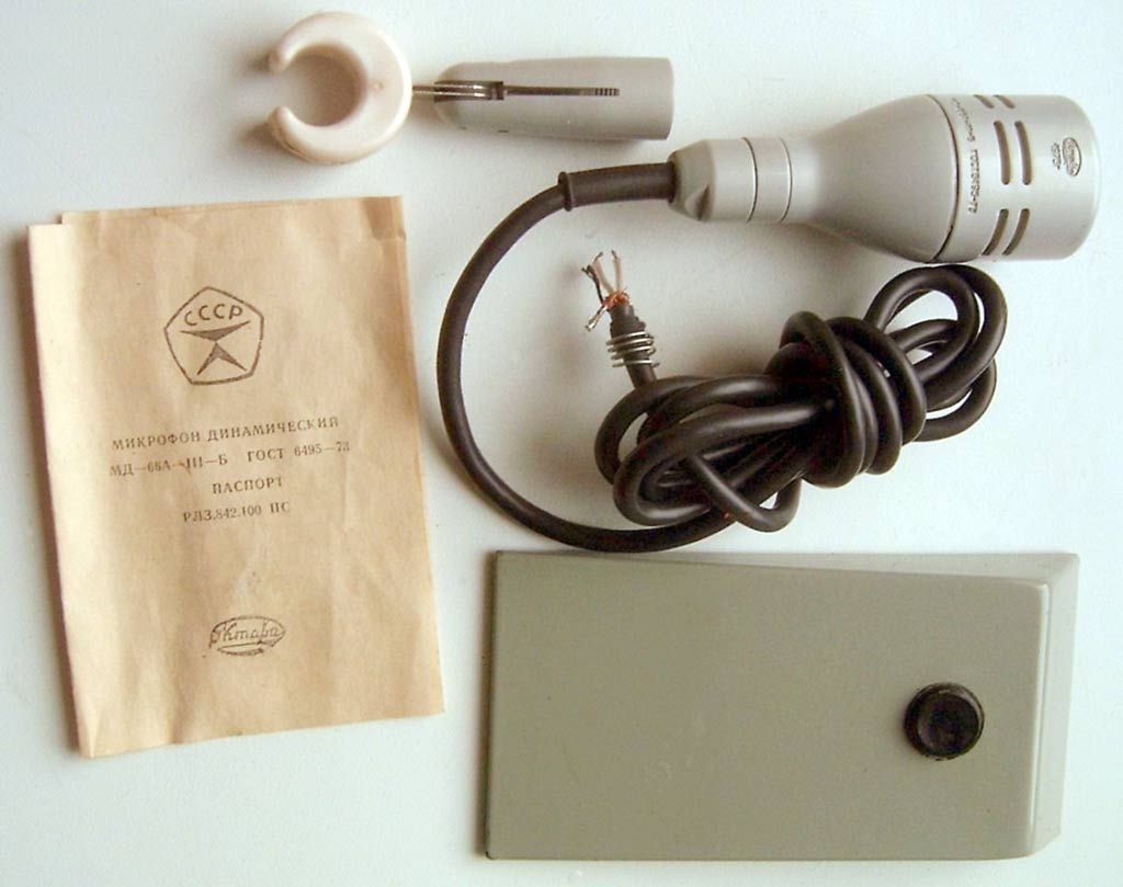 Микрофон динамический *МД-66* предположительно с 1972 года выпускал Тульский завод *Октава*. Остронаправленный микрофон предназначен для усиления речи, диспетчерской связи и звукозаписи. Диапазон частот звука 100...12000 Гц (100...10000 Гц). Микрофон *МД-66А* отличается отсутствием кабеля, а микрофон *МД-66Э* возможностью работы в местах с повышенным электромагнитным полем. Микрофоны выпускались ещё и в тропическом исполнении с буквой *Т* после наименования.
