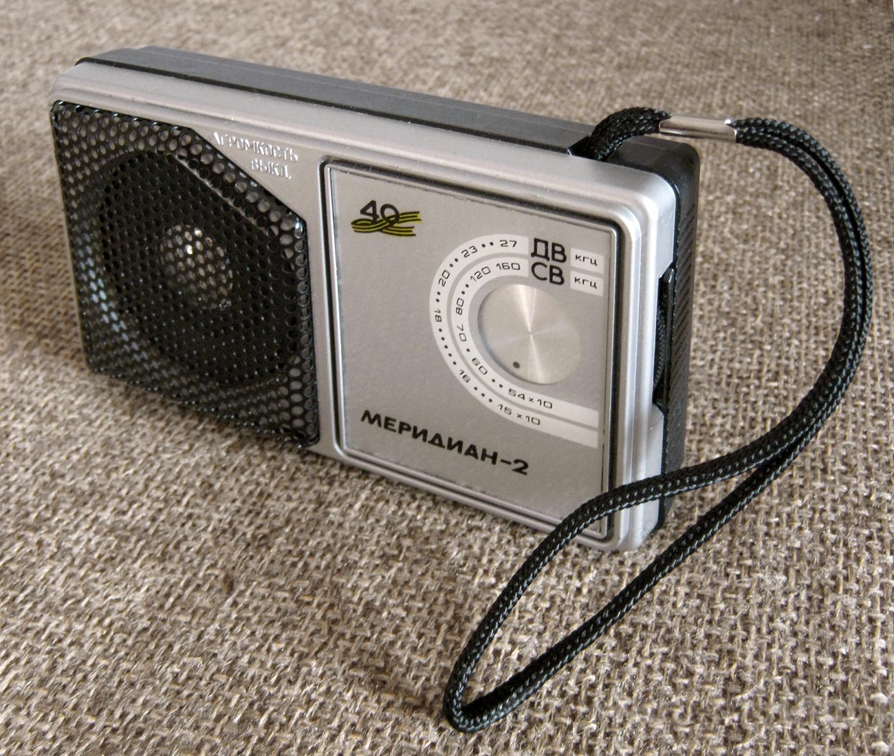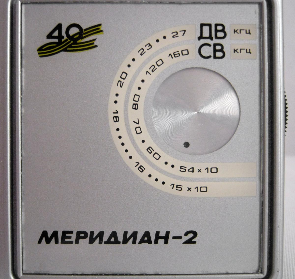 Портативный радиоприёмник *Меридиан-2* был выпущен в 1984 году Киевским заводом *Радиоприбор*. Приёмник выпущен к 40-летию победы в ВОВ. Он собран по супергетеродинной схеме на микросхеме К174ХА10 и работает в диапазонах ДВ и СВ. Чувствительность в ДВ диапазоне 2 мВ/м, СВ 1,5 мВ/м. Полоса воспроизводимых частот 315...3150 Гц. Максимальная выходная мощность 80 мВт. Габариты приёмника 38х80х140 мм. Масса без упаковки 260 гр.