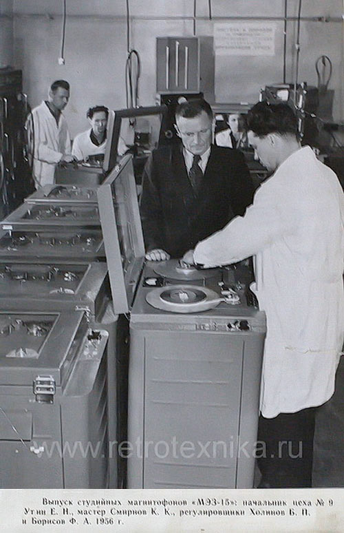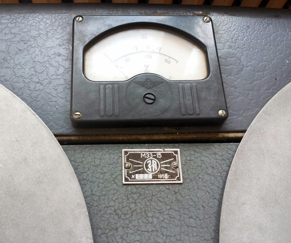 Студийный катушечный (бобинный, рулонный) магнитофон *МЭЗ-15* выпускал предположительно с 1954 года Московский экспериментальный завод и Горьковский завод им. Петровского. Однодорожечный магнитофон *МЭЗ-15* предназначен для работы в студиях радиовещания и телевидения. Магнитофон имеет четыре головки (записывающую, универсальную, воспроизводящую, стирающую) и раздельные усилители. Магнитная лента типа С или 1, намотанная в рулоны по 1000 метров. Скорость протяжки магнитной ленты 76,2 см/сек. Детонация 0,2%. Время записи или звучания фонограммы на одной дорожке - 22 минуты. Применённые радиоламп 6Н8С (2), 6Н9С (2), 6Ц6С (2). Выходное напряжение на линейном выходе 3 В (600 Ом). Диапазон рабочих частот 30...15000 Гц. Потребляемая от сети мощность 300 Вт. Масса магнитофона 100 кг.