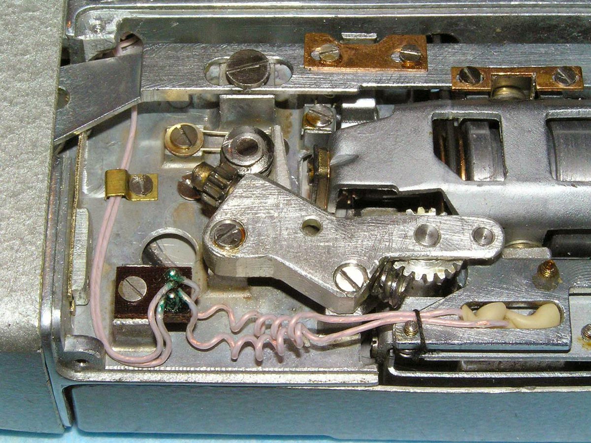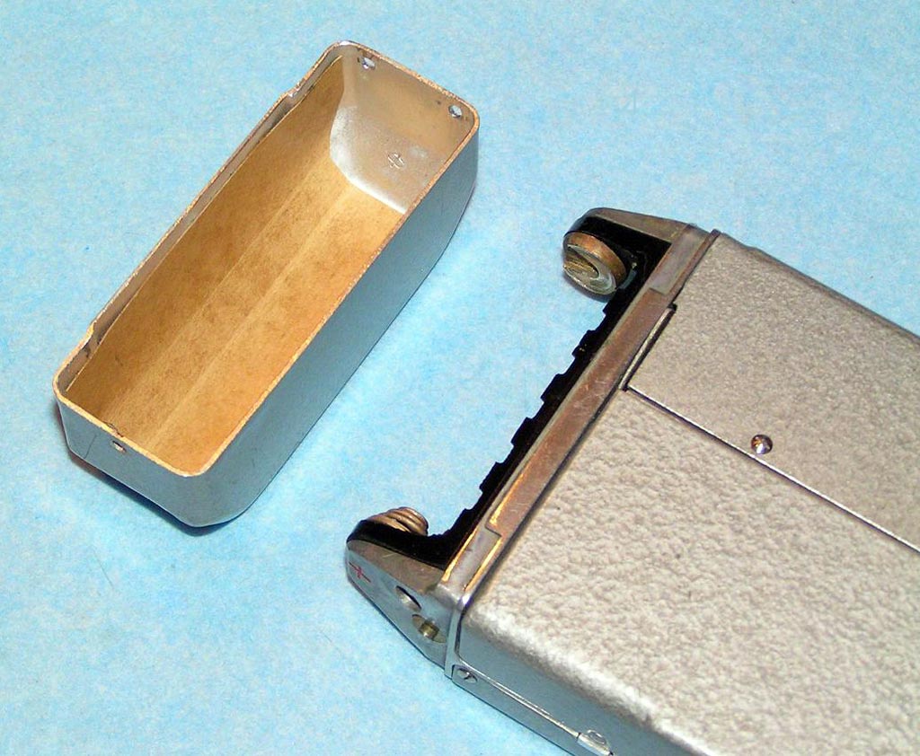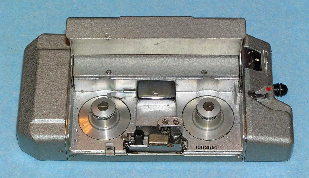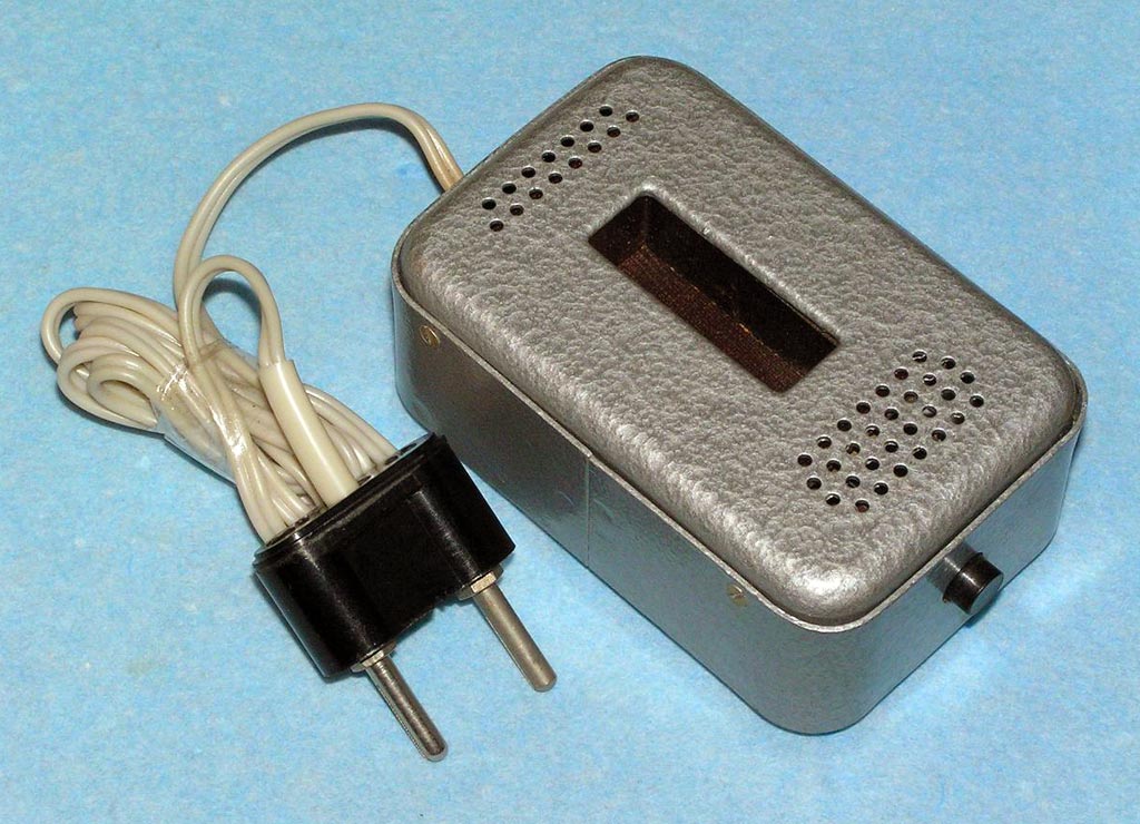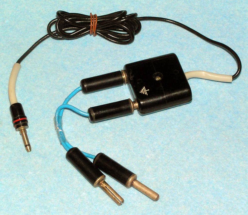 Портативный проволочный диктофон *Мезон* выпускался предположительно с 1960 по 1987 годы для спецслужб и МВД. Габариты аппарата 158х75х26 мм. Вес без питания 500 г. Проволоки на катушке хватает на 1,5 часа записи. Размеры катушки 35х12 мм. Время обратной перемотки 1 час. Питание 7 В от батареи *БОР*, элементов ОР-2К (РЦ-63), аккумуляторов *DEAC* или 5 элементов *Сатурн*, размещаемых во внешнем контейнере. Питание можно подать от внешнего источника через адаптер, вставляющийся в батарейный отсек. Запись осуществляется микрофоном *Нева* или *Т-65*, наушника ТМ-2, или от адаптера. Прослушивание записи осуществляется наушником ТМ-2 или внешним УНЧ. Для подключения микрофона, наушника и адаптера есть разъём с маркировкой *М*. Два других разъема предназначены для переключателя ДУ. Штекеры имеют резьбу, для предотвращения случайного выскакивания. Управляется диктофон переключателем, который в нерабочем состоянии находится в положении *Стоп*, отмеченном на крышке корпуса синим кружком. При переключении переключателя в положение, отмеченное красным кружком, и при закрытой верхней крышке, осуществляется запись, а при открытой - воспроизведение. Обратная перемотка проволоки осуществляется при открытой крышке и переключении переключателя по часовой стрелке до упора. Схема собрана на пяти транзисторах. Для уменьшения наводок блок усилителя помещен в пермаллоевый экран. Разъёмы, схема управления двигателем и генератор подмагничивания собраны на плате, размещенной в торце корпуса. Для регулирования уровня громкости и записи имеется аттенюатор на 3 положения. Стирающей головки нет, стирание осуществляется внешним размагничивающим дросселем. Пассик передает движение от двигателя к горизонтальному маховику, который в свою очередь вращает одну из двух обрезиненных планшайб, в зависимости от режима работы. Универсальная головка перемещается вверх - вниз с помощью червячного механизма. Имеется автостоп, срабатывающий, когда на подающей катушке заканчивается проволока. При этом на подающей катушке освобождается подпружиненный рычажок, удерживаемый витками проволоки, и нажимает на рычаг автостопа, расположенный под подающей катушкой. Последний размыкает контакты цепи двигателя. Комплект имеет необходимый набор аксессуаров, таких как дополнительные катушки, в том числе с проволкой, адаптер питания, адаптер записи от внешнего источника, адаптер для бесконтактной записи с телефонной линии, дроссель размагничивания, батарею *БОР*, чашки элементов ОР-2К (РЦ-63), наушник ТМ-2, тубу со смазкой, устройство заправки проволоки.